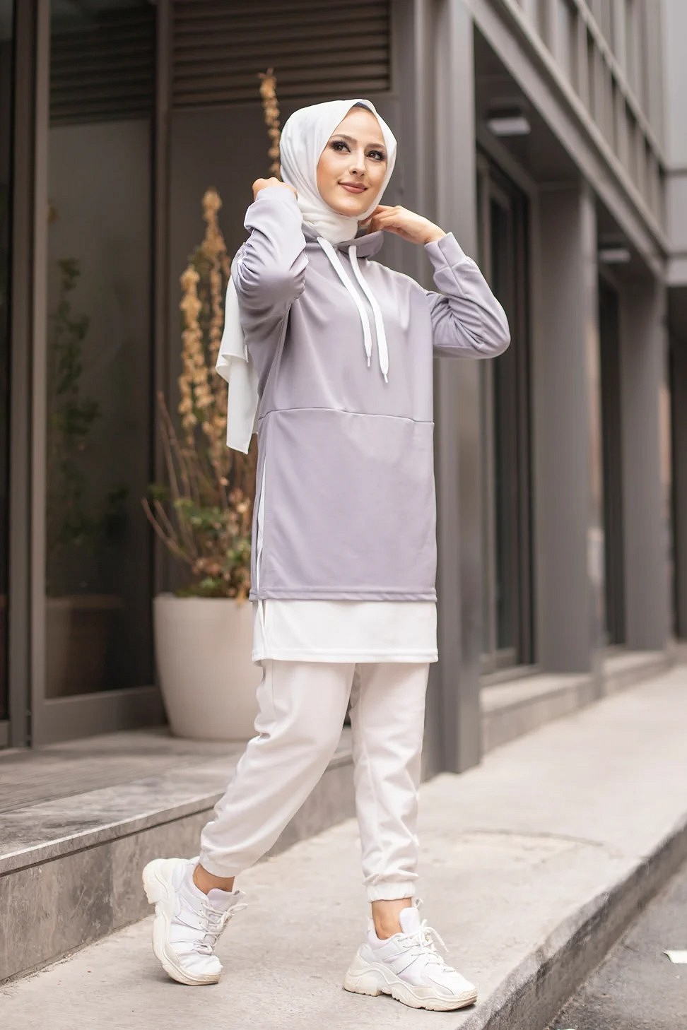 Tunique sportive bicolore pour femme voilée - Couleur blanc et gris clair Vetement & Accessoire
