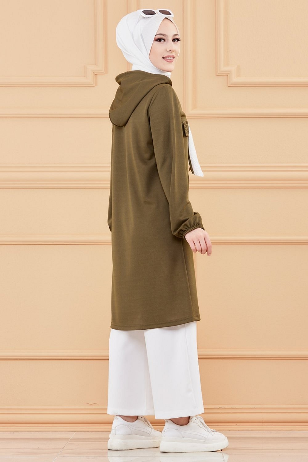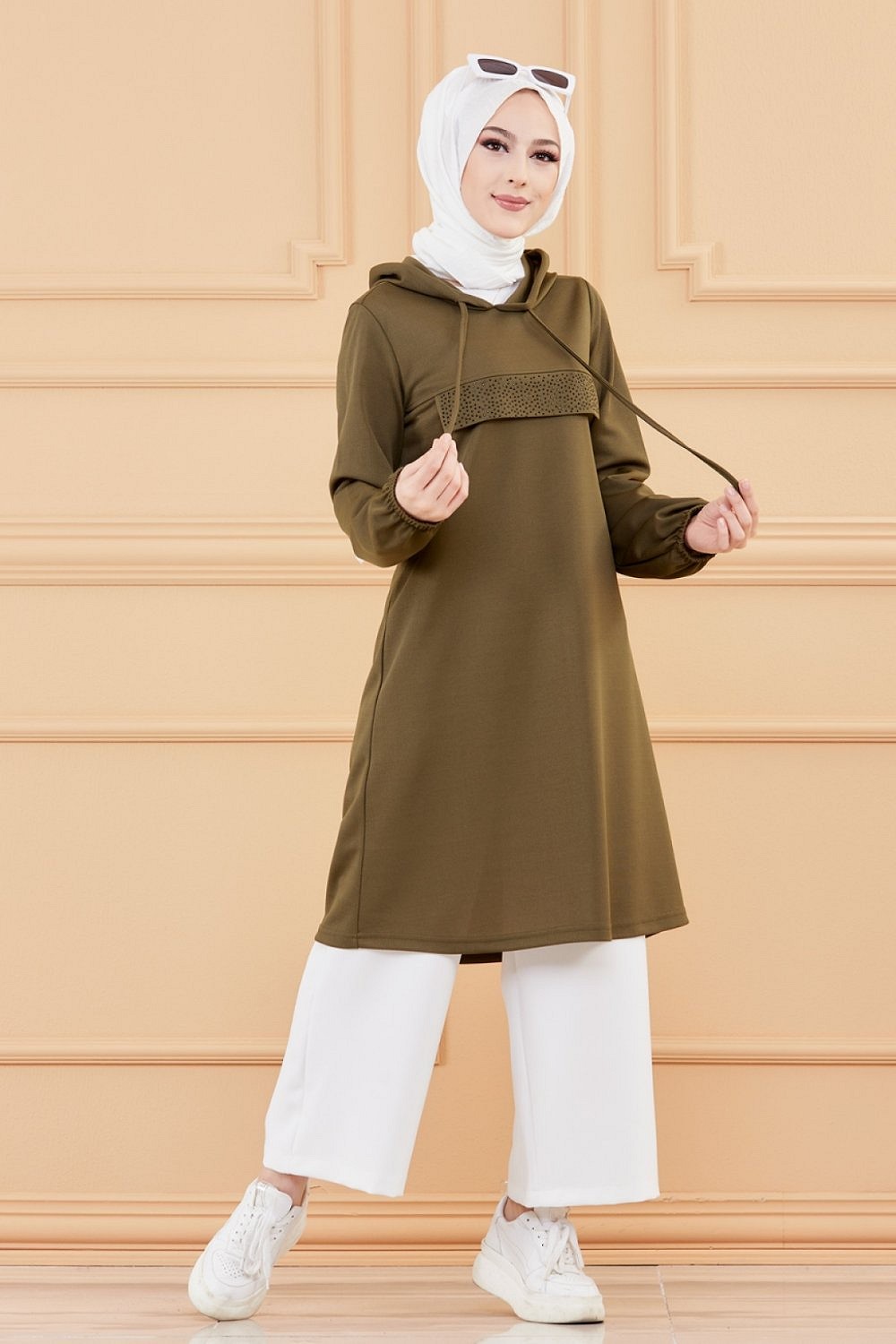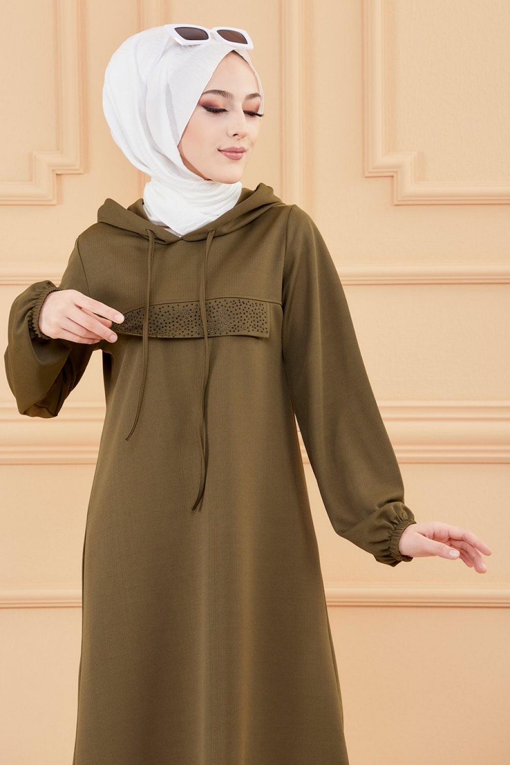 Tunique style décontracté avec strass et capuche (Vêtements modernes pour jeunes musulmanes) - Couleur kaki Vetement & Accessoire