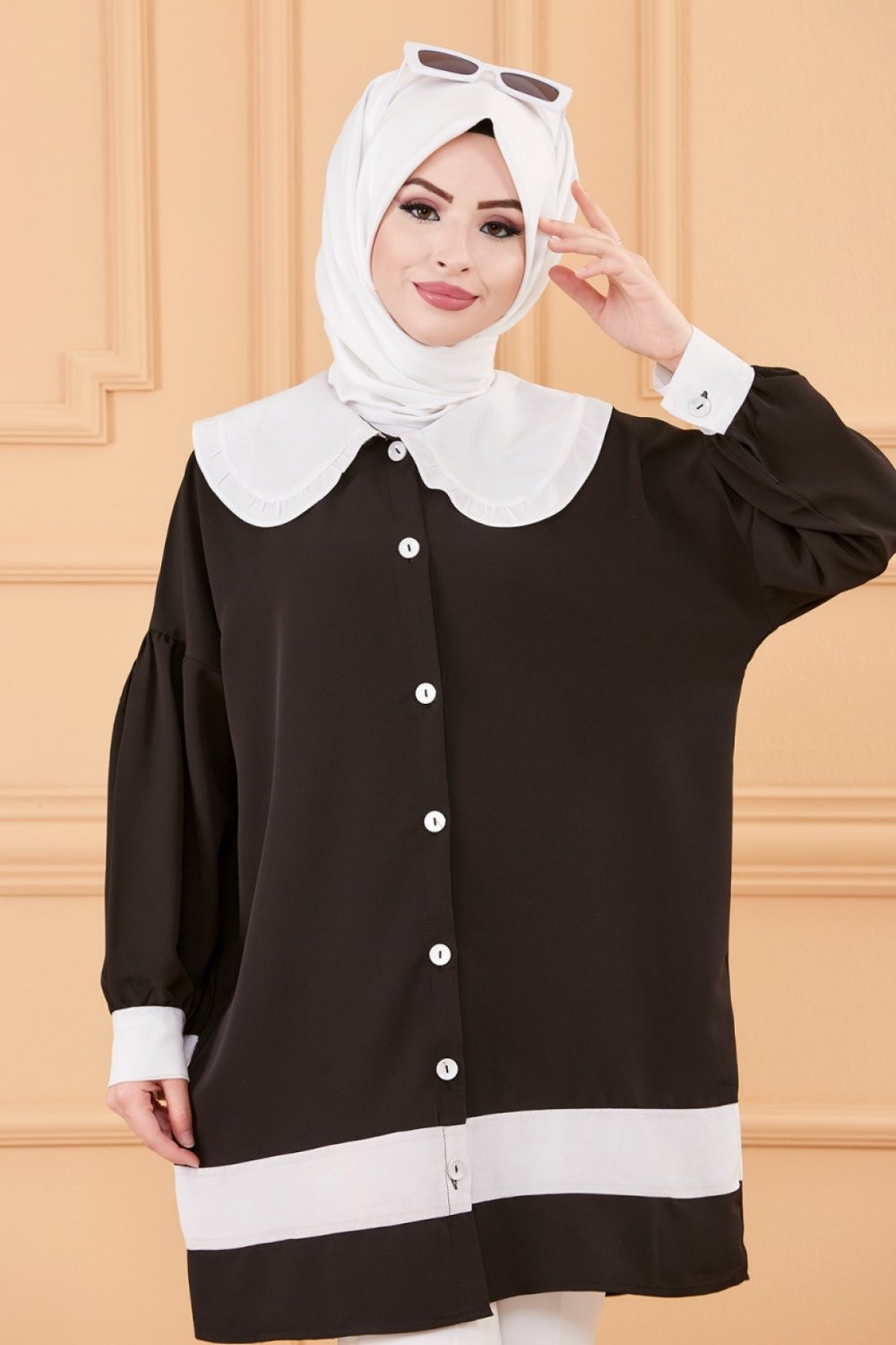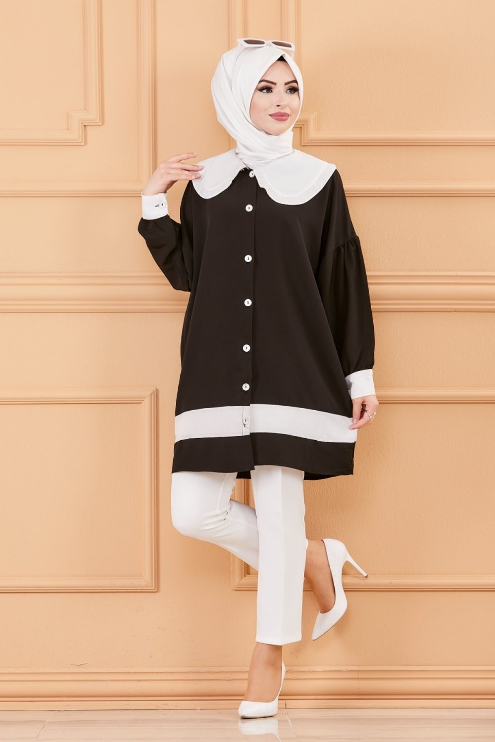Tunique style habillé (Vêtement chic pour femme voilée) - Couleur noir et blanc Vetement & Accessoire