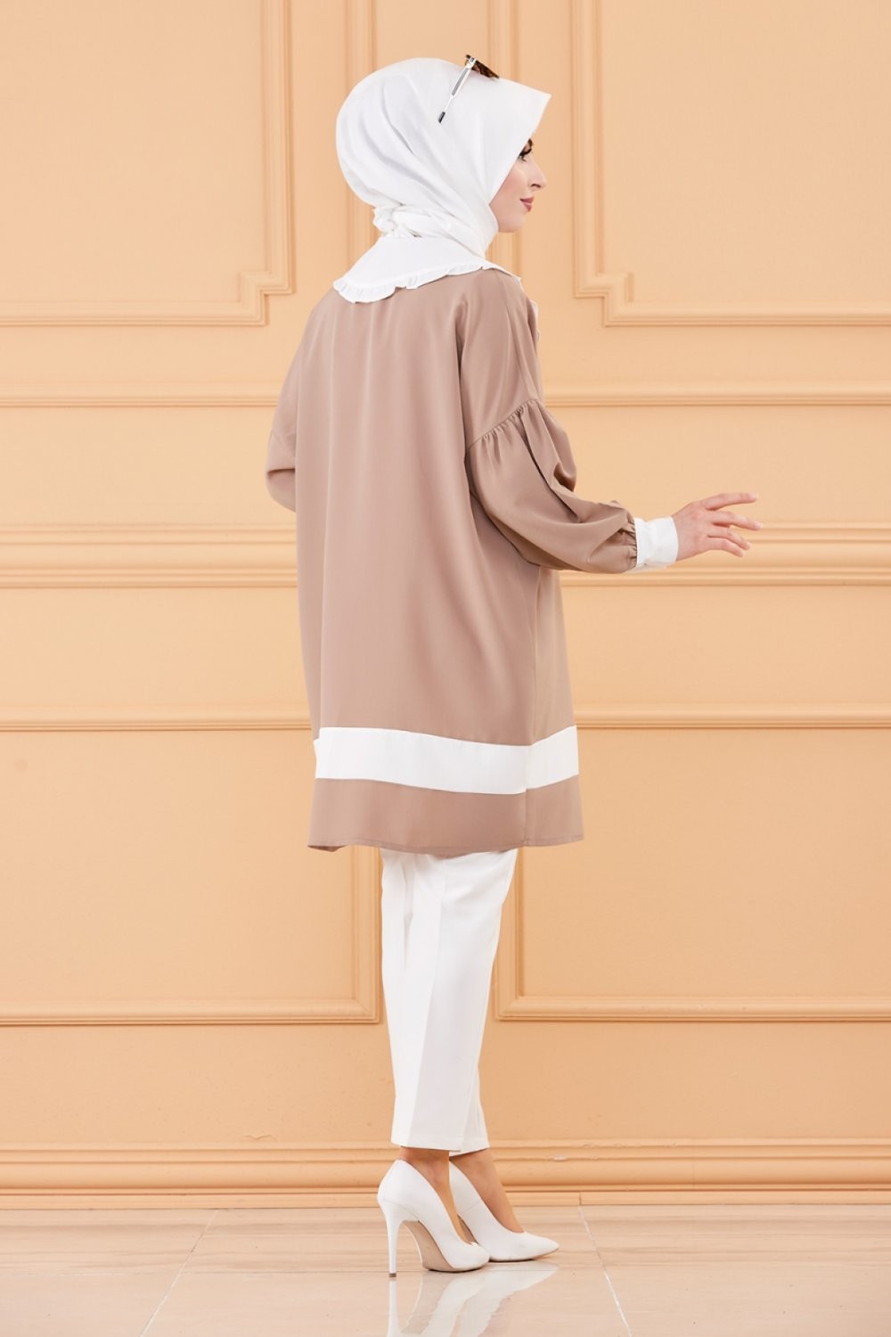 Tunique style habille (Vetement chic pour femme voilee) - Couleur taupe et blanc