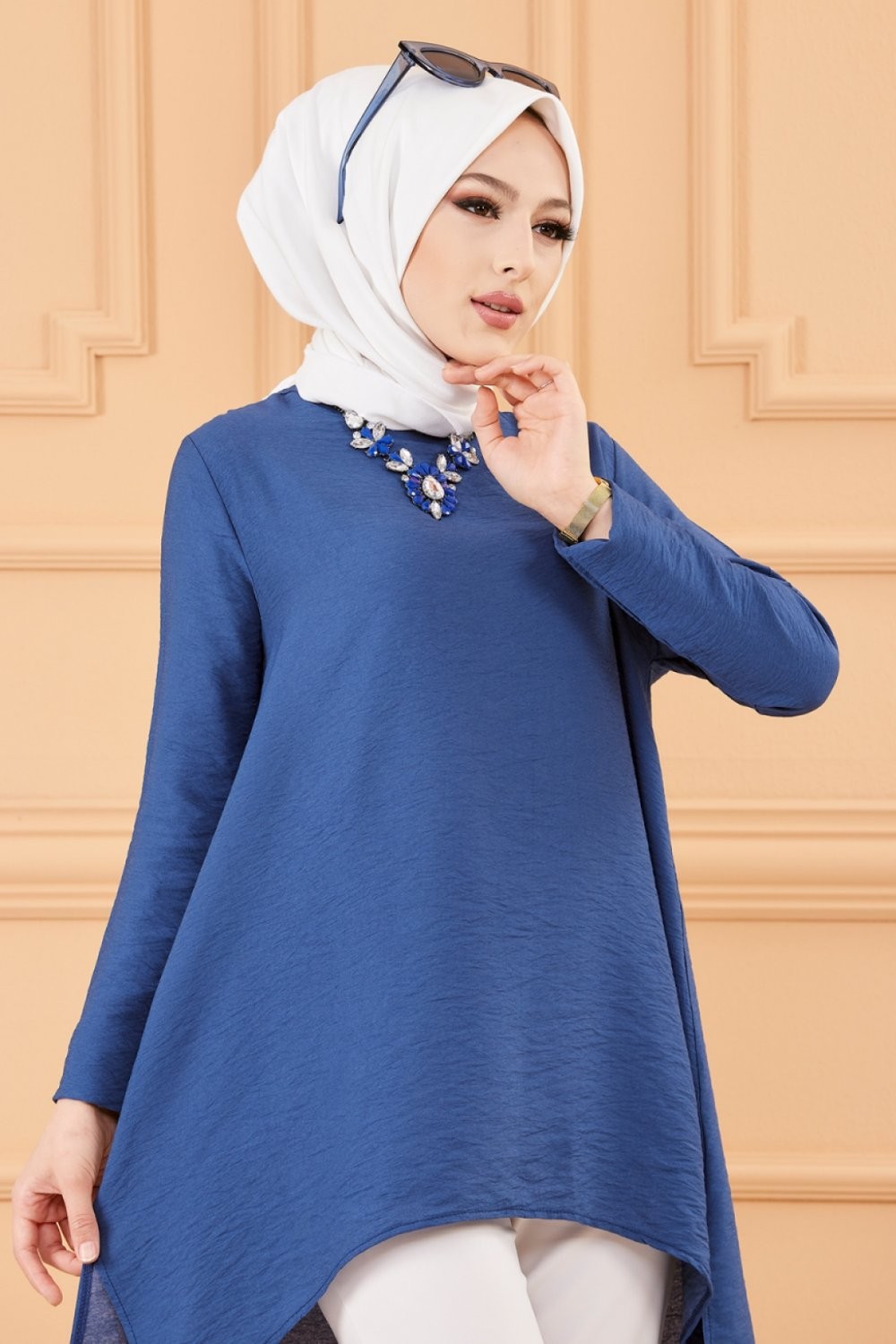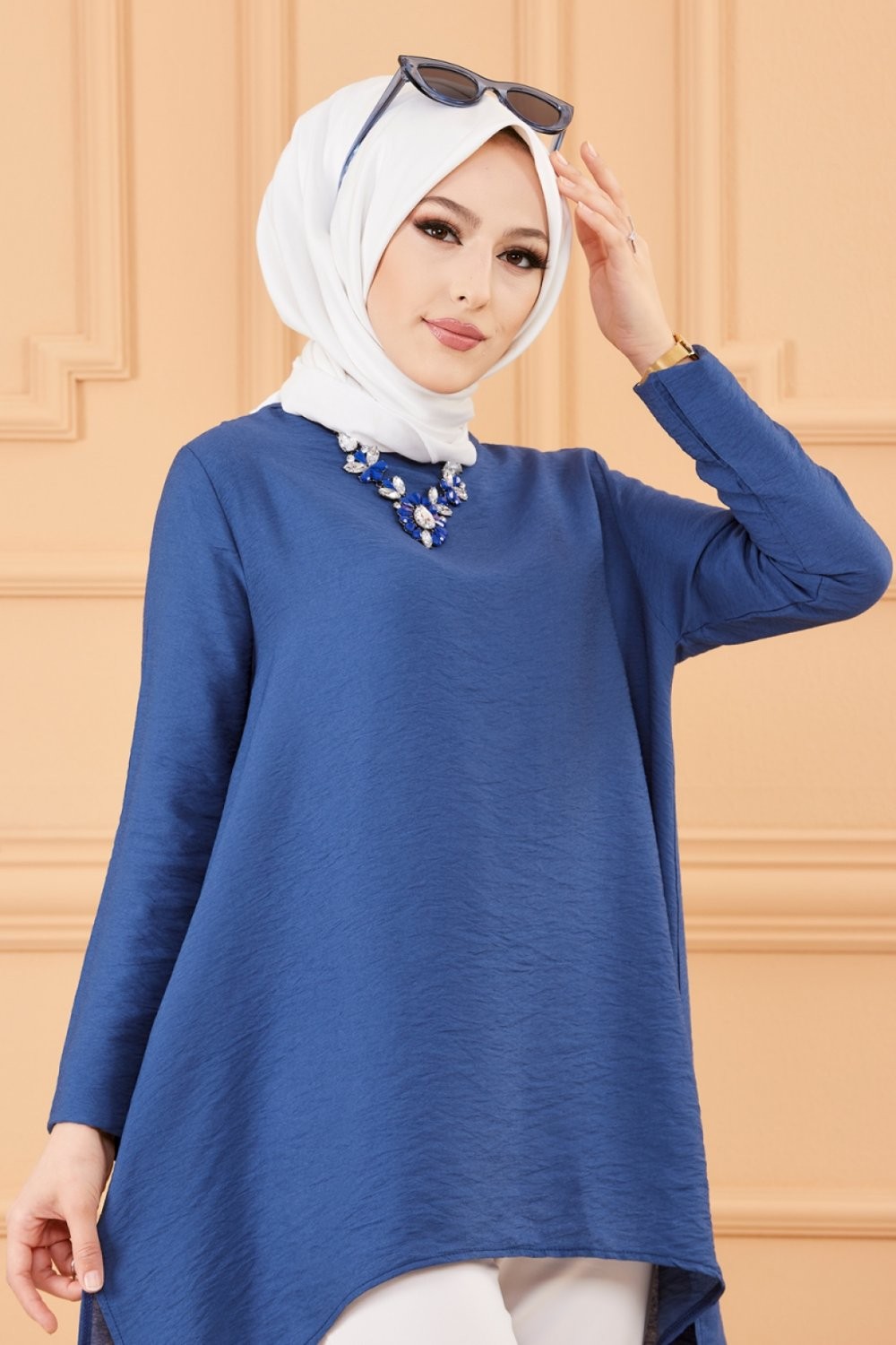 Chemise longue boutonnée type tunique (Vetements et tenues pour Hijab) - Couleur Beige - REF. 34697 (25.00 €)