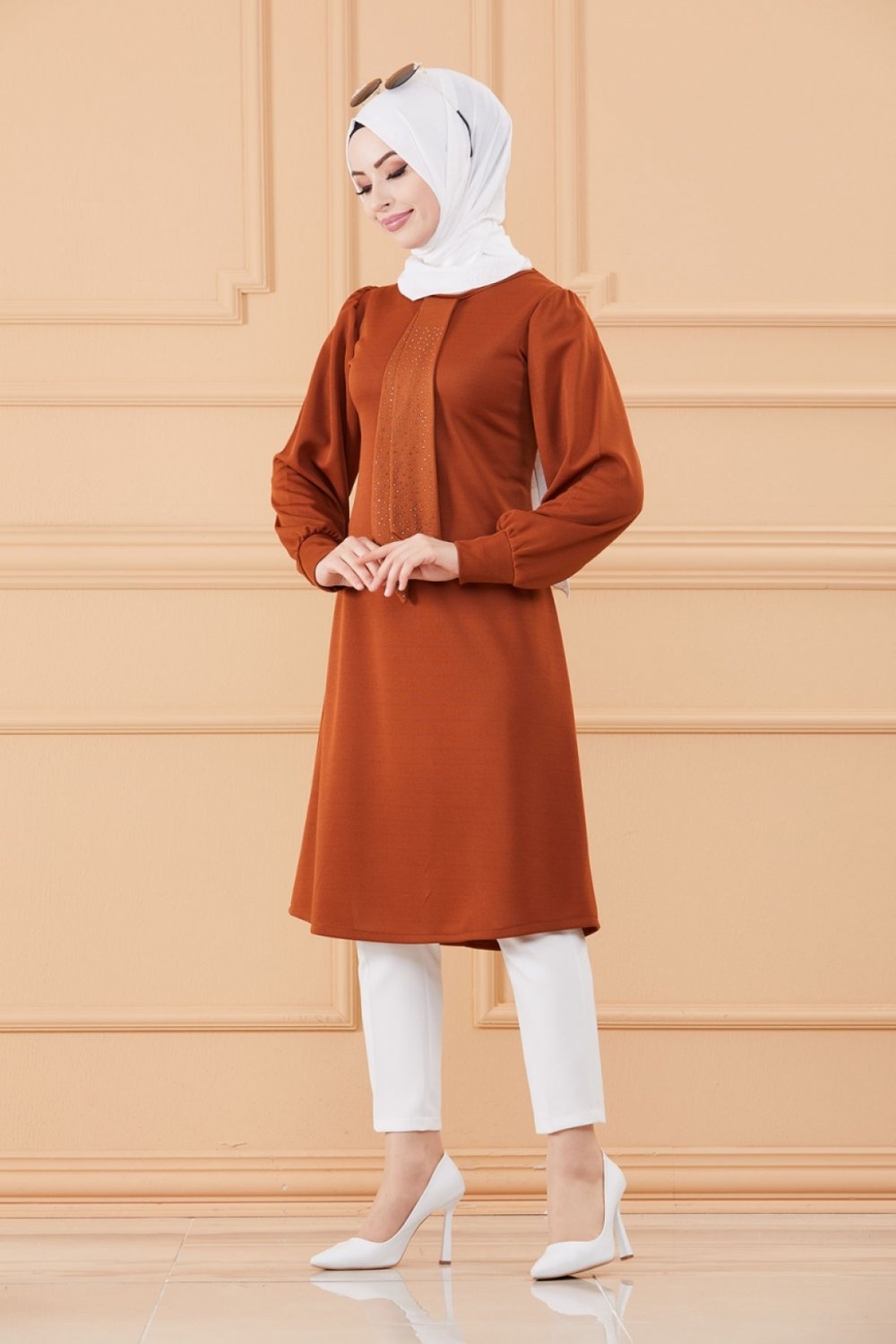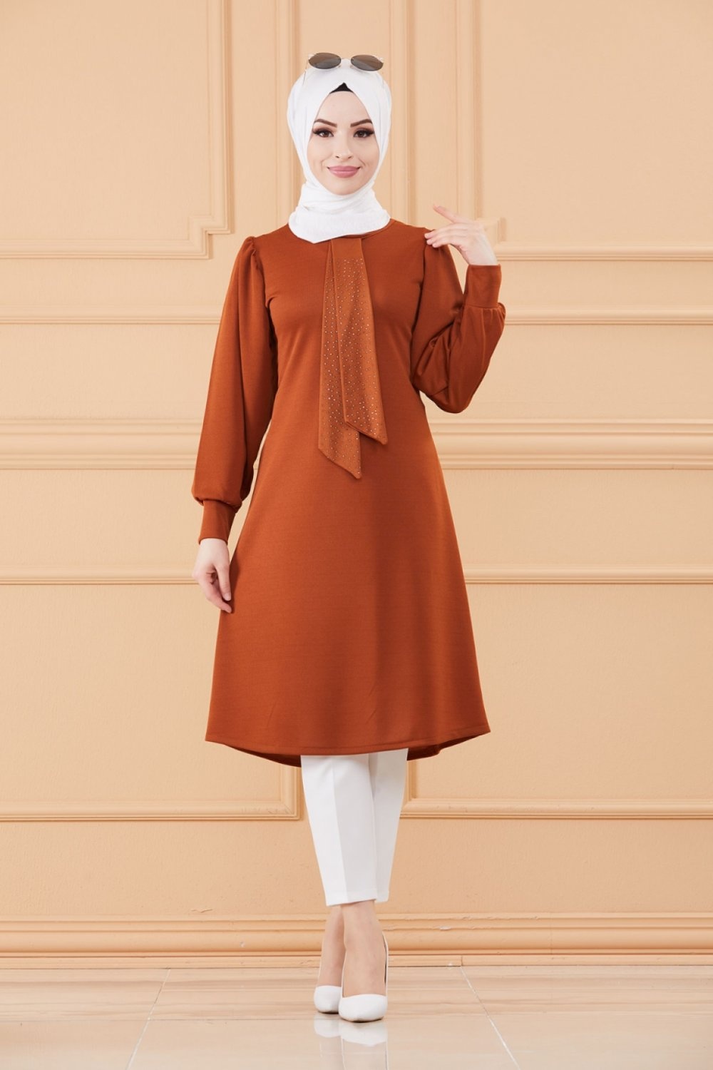 Tunique style habille pour femme (Tenue hijab classique) - Couleur brique