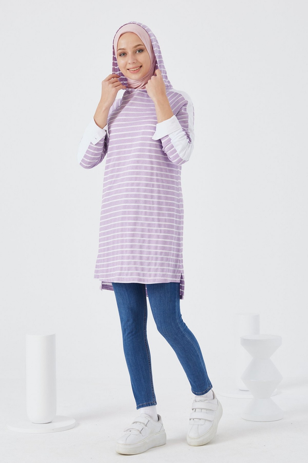 Tunique style moderne et decontracte pour femme - Rayures de couleur lilas