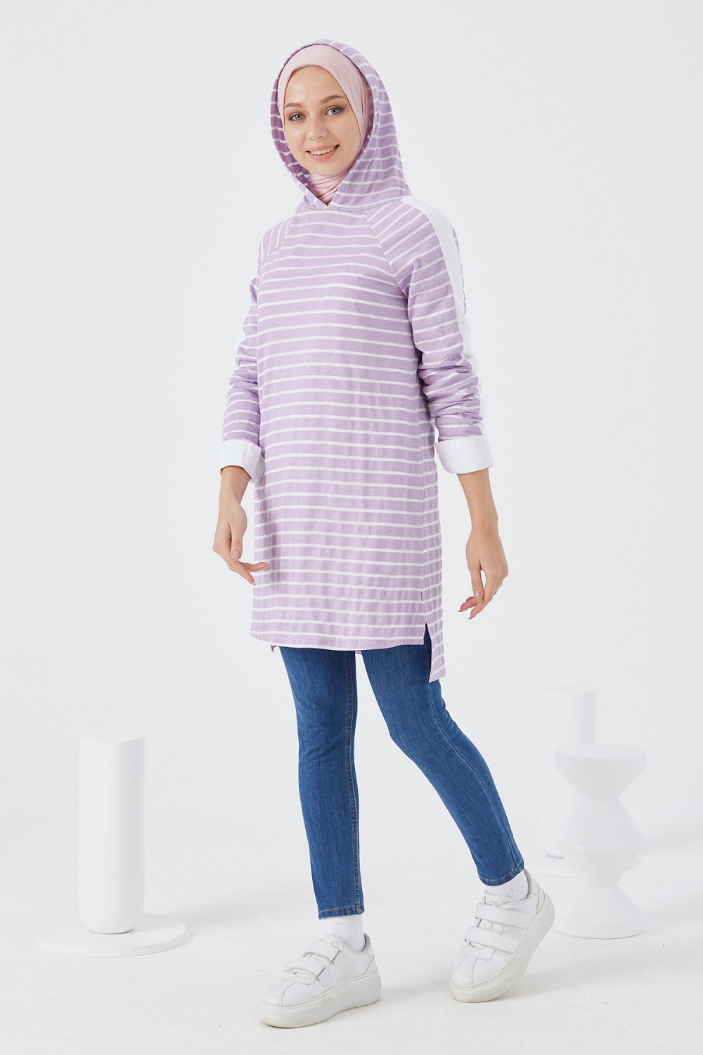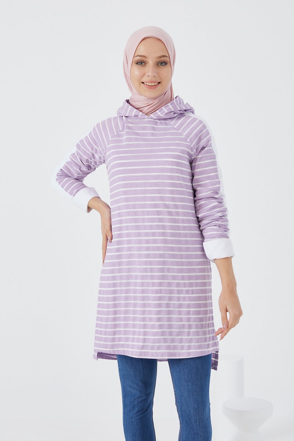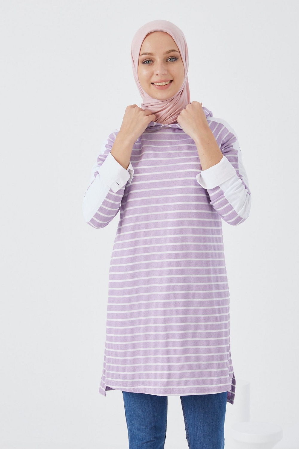 Tunique style moderne et décontracté pour femme - Rayures de couleur lilas Vetement & Accessoire