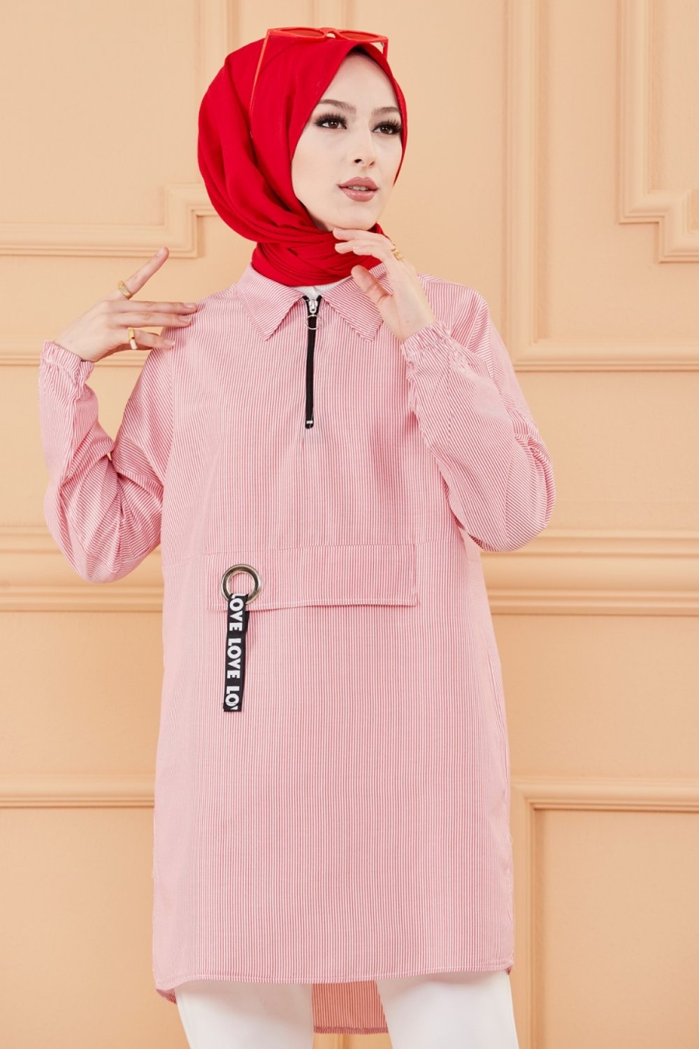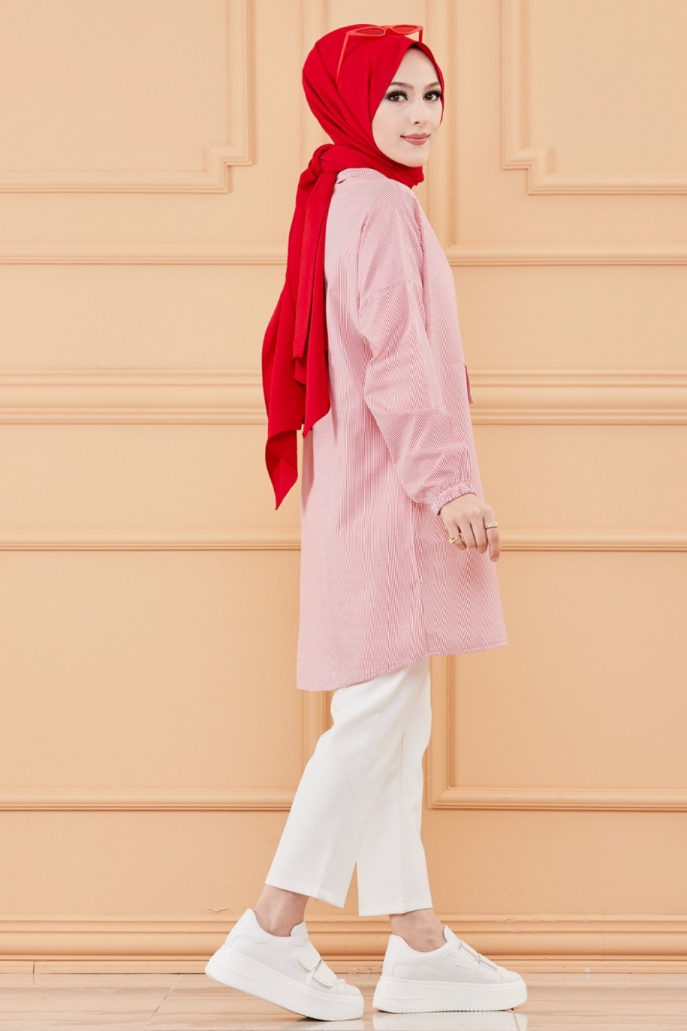 Tunique style moderne pour femme (Vêtement hijab en ligne) - Rayures couleur rouge Vetement & Accessoire