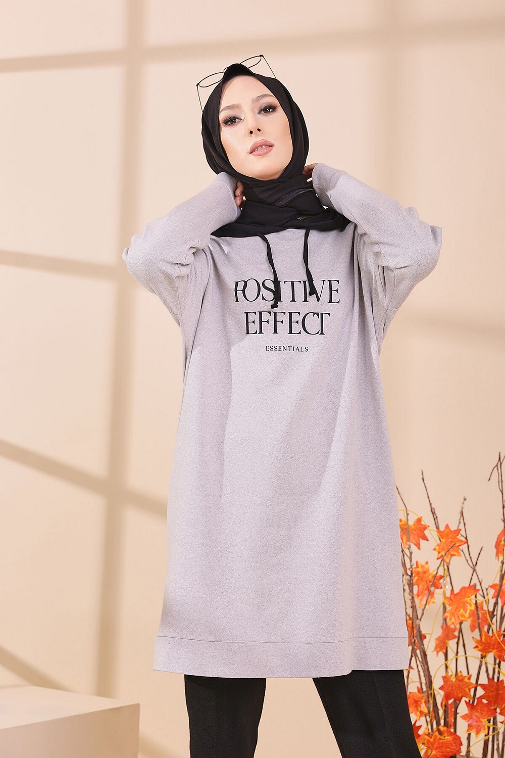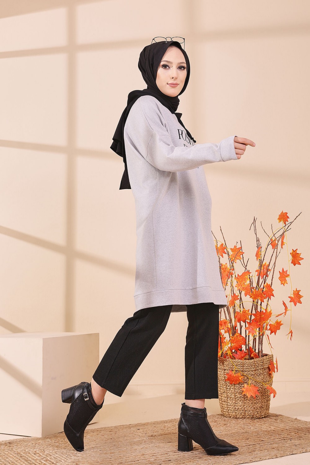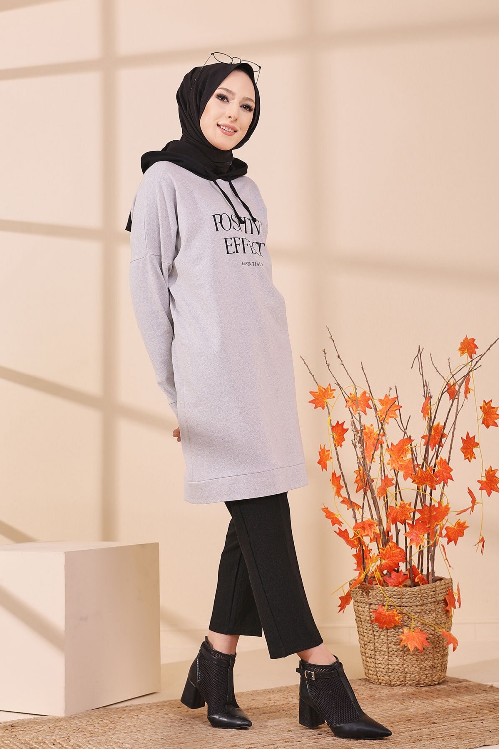 Tunique type sweat long a capuche (Vetement de tous les jours pour Hijab) - Couleur gris clair