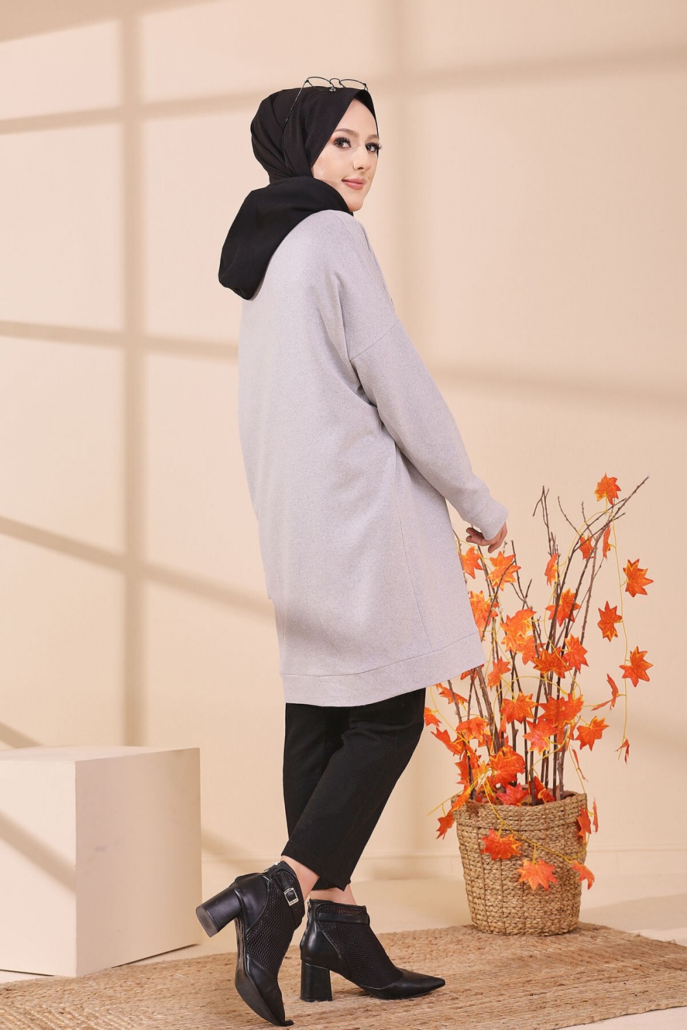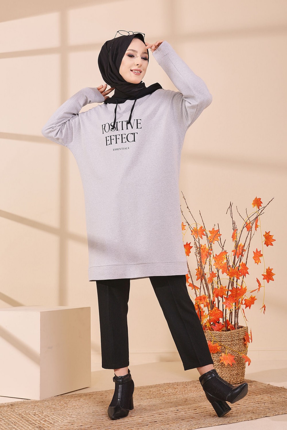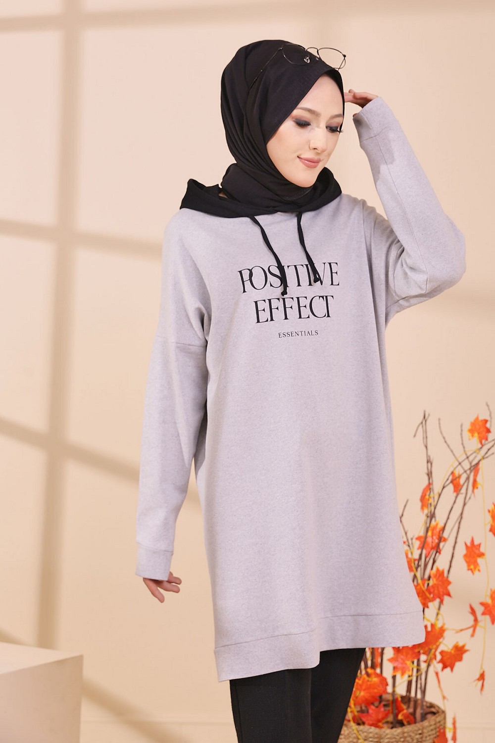 Tunique type sweat long a capuche (Vetement de tous les jours pour Hijab) - Couleur gris clair