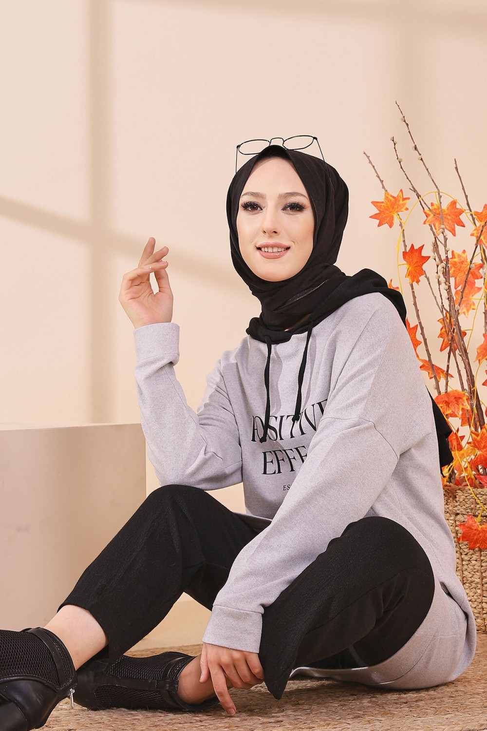 Tunique ample style décontracté et sport (Sweat Hijab moderne) - Couleur gris foncé - REF. 35506 (25.00 €) - En Promotion à 19.90 €