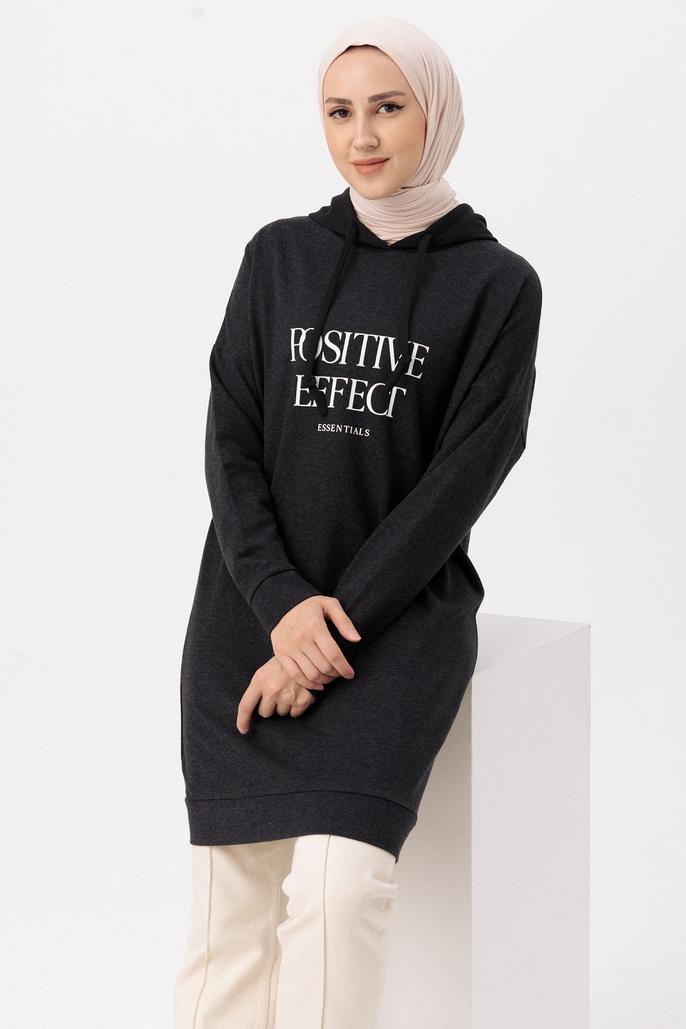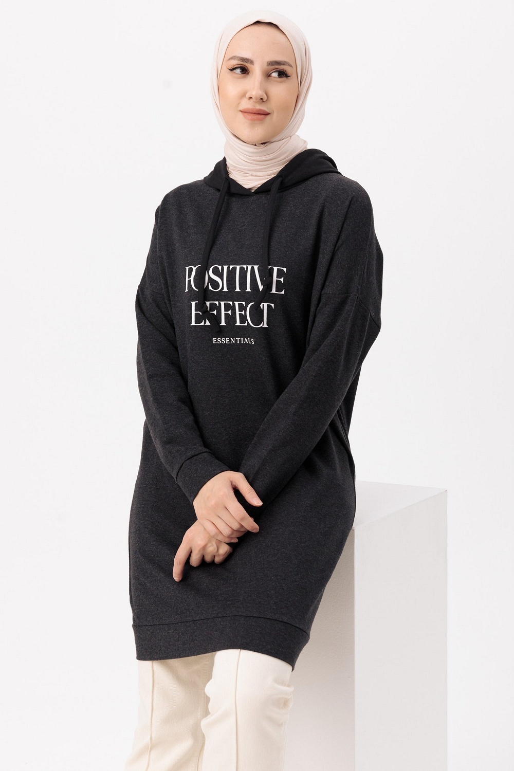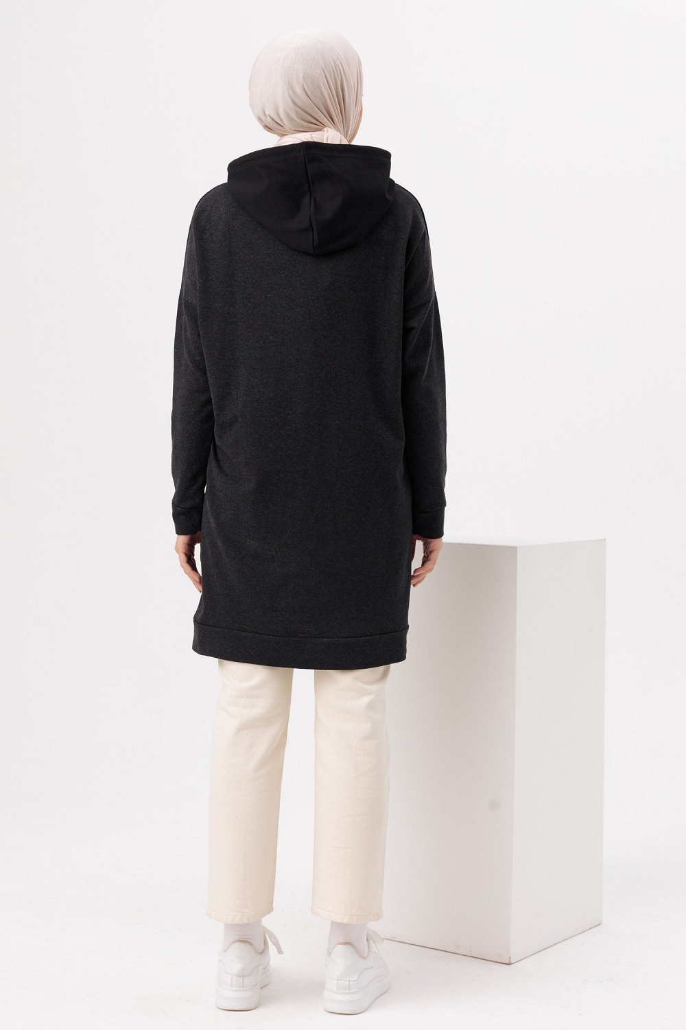 Tunique type sweat-shirt a capuche (Vetement decontracte et sport pour hijab) - Couleur anthracite