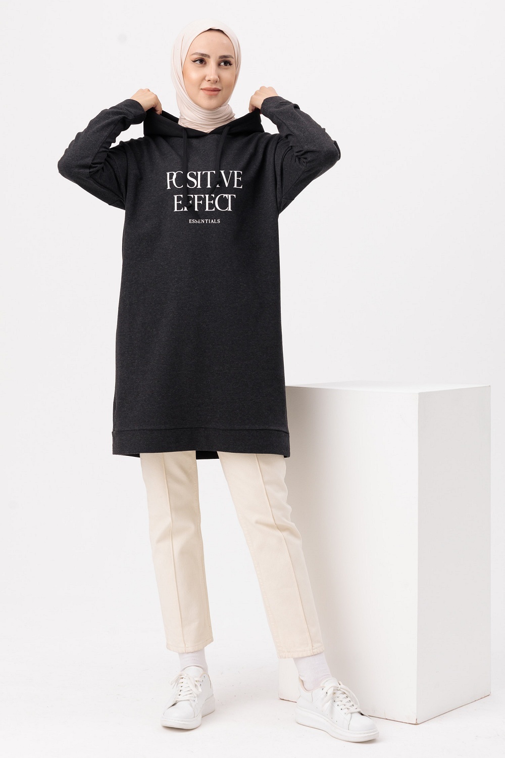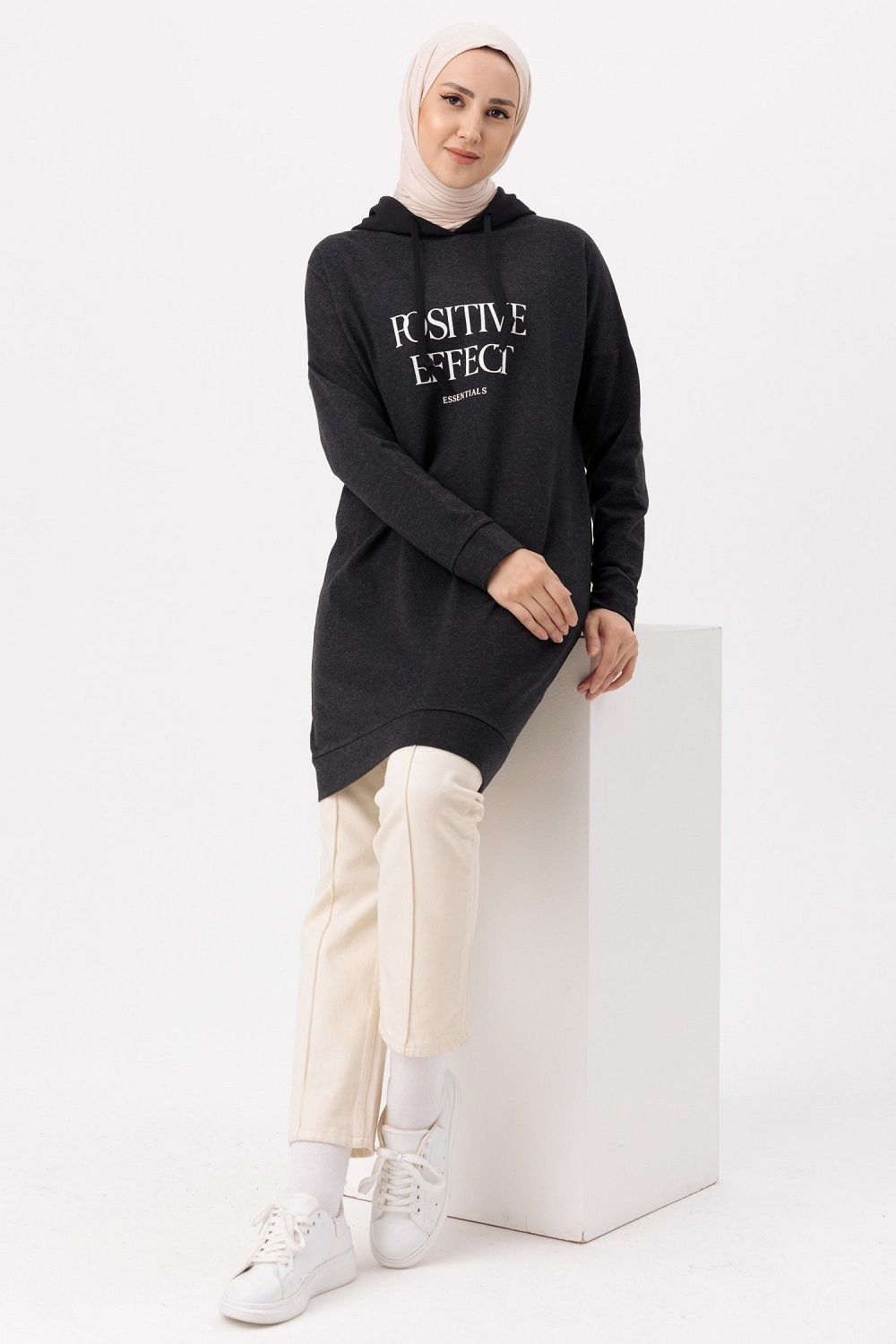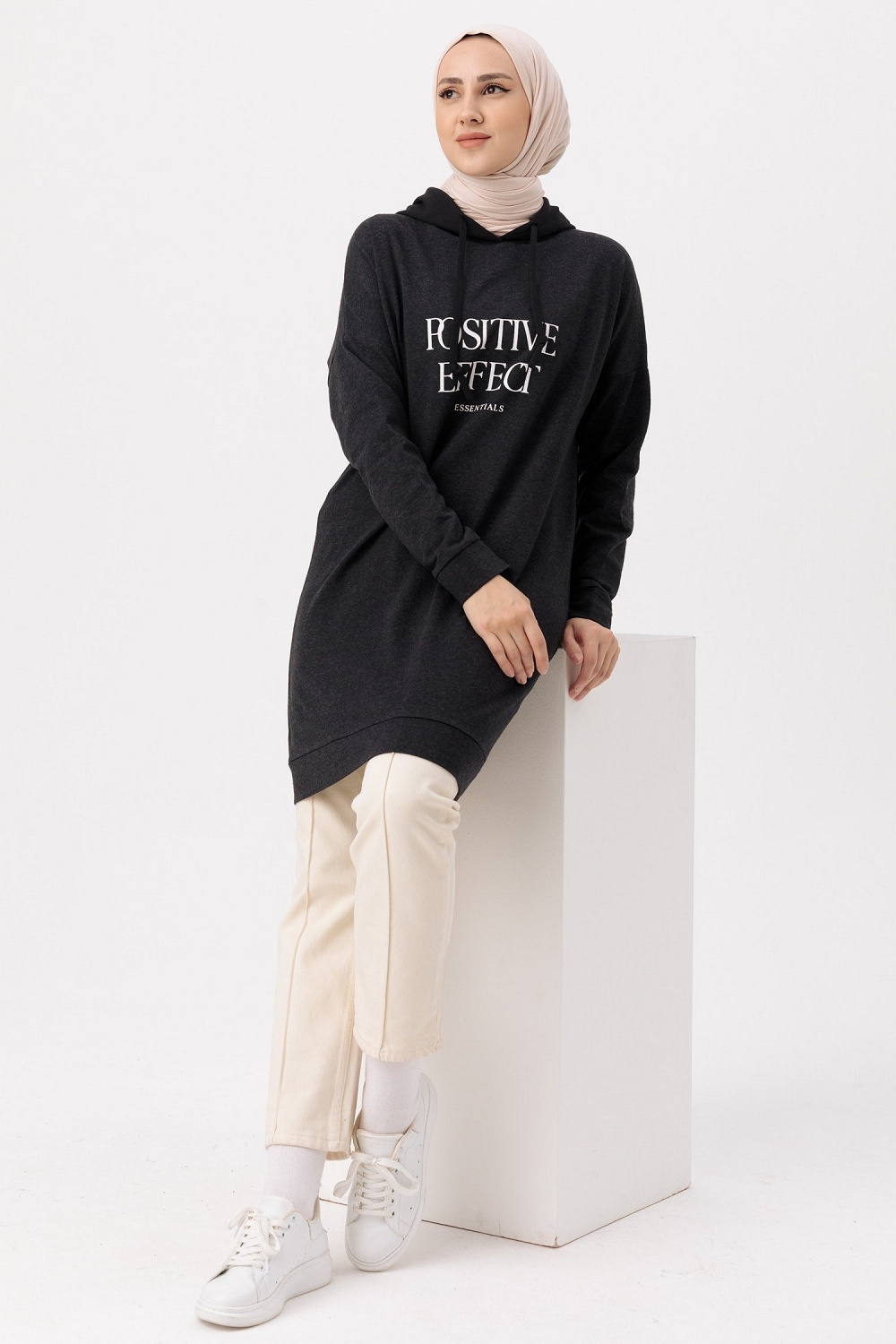 Tunique type sweat-shirt a capuche (Vetement decontracte et sport pour hijab) - Couleur anthracite