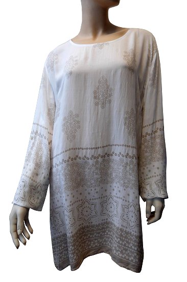 Tunique viscose à motif floral pour femme - Couleur blanc et beige Vetement & Accessoire