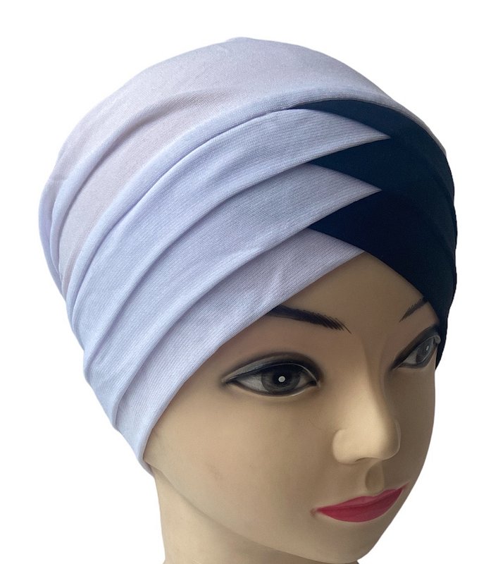 Turban bonnet croisé bicolore femme moderne - Couleur Blanc et Noir Vetement & Accessoire
