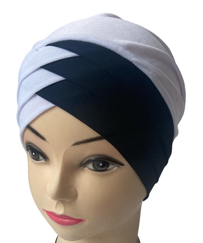 Turban bonnet croisé bicolore femme moderne - Couleur Noir et Blanc - REF. 39998 (3.90 €)