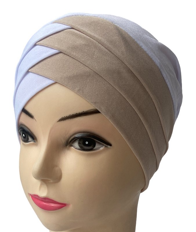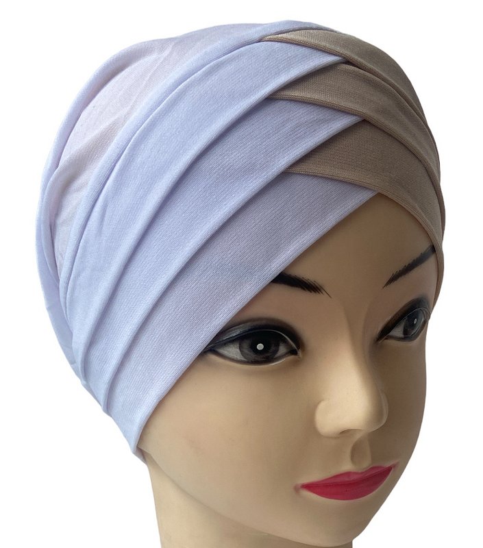 Turban bonnet croisé bicolore femme moderne - Couleur Blanc et beige Vetement & Accessoire