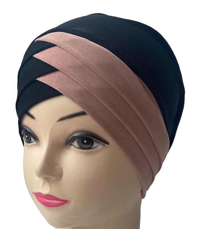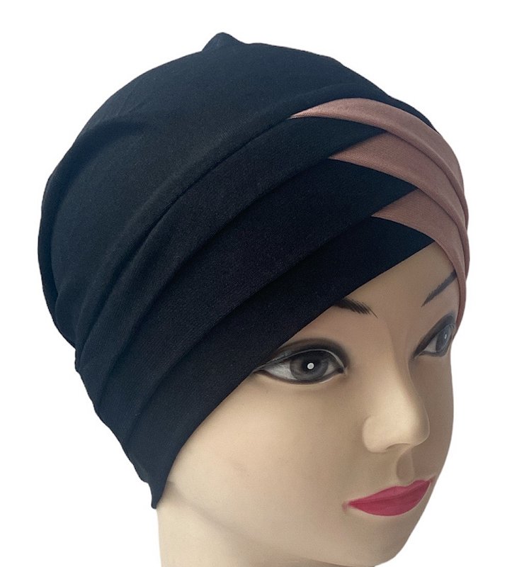 Turban bonnet croisé bicolore femme moderne - Couleur Noir et Abricot Vetement & Accessoire