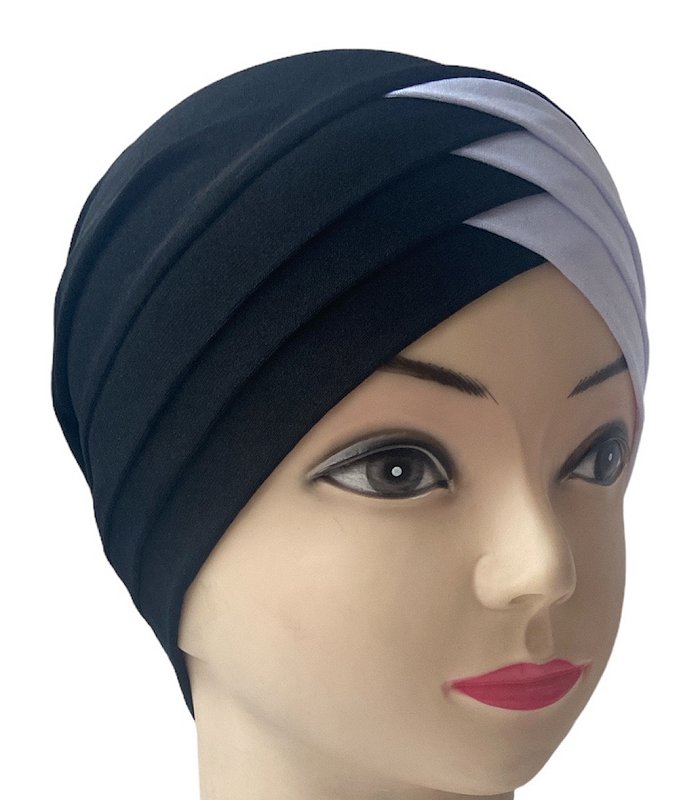 Turban bonnet croisé bicolore femme moderne - Couleur Noir et Blanc Vetement & Accessoire