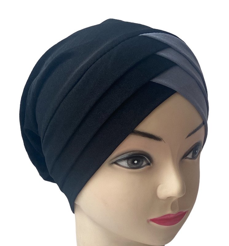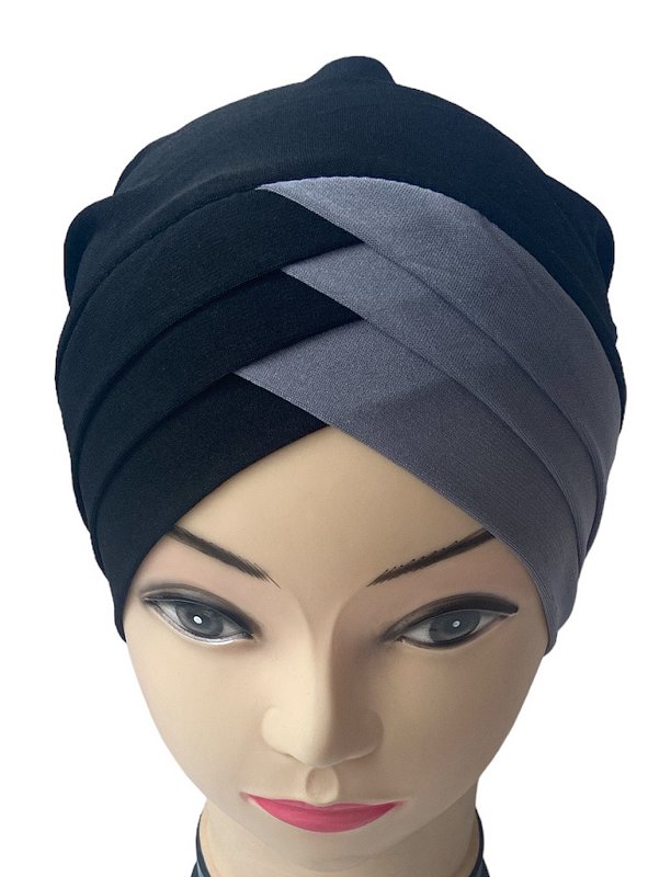 Turban bonnet croise bicolore femme moderne - Couleur Noir et Gris