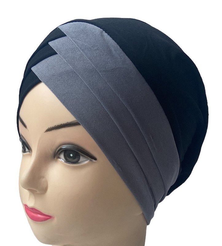 Turban bonnet croisé bicolore femme moderne - Couleur Noir et Gris Vetement & Accessoire