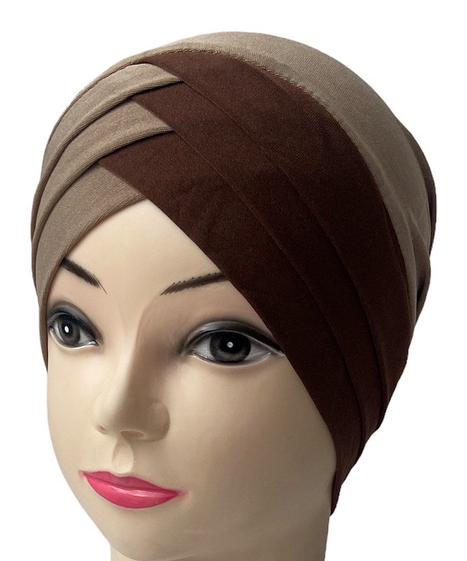 Ce turban bicolore plissé à l'avant, léger et très facile à porte va donner une touche d'élégance et de vitalité a votre tenu, en quelques secondes. Il est disponible en plusieurs couleurs.