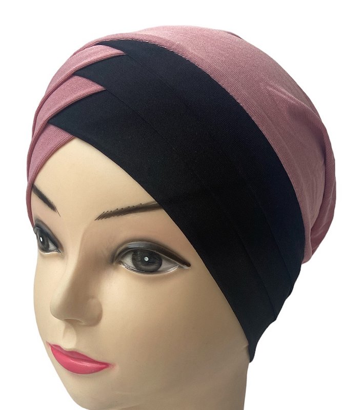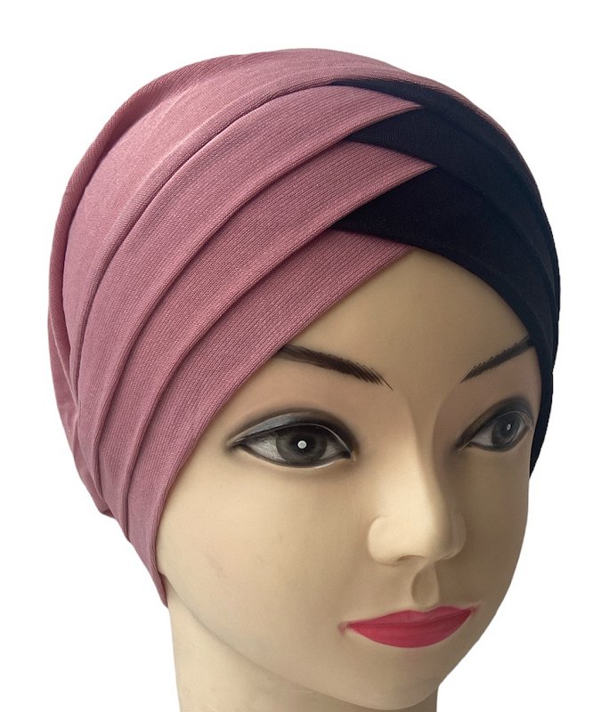 Turban bonnet croisé bicolore femme moderne - Couleur Vieux rose et Noir Vetement & Accessoire
