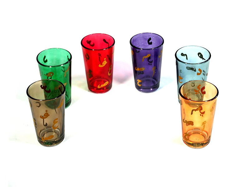Verres à thé marocain CLASSIQUE colorés et ornés de motifs traditionnels dorés (Pack de 6 verres) - REF. 15941 (20.00 €)