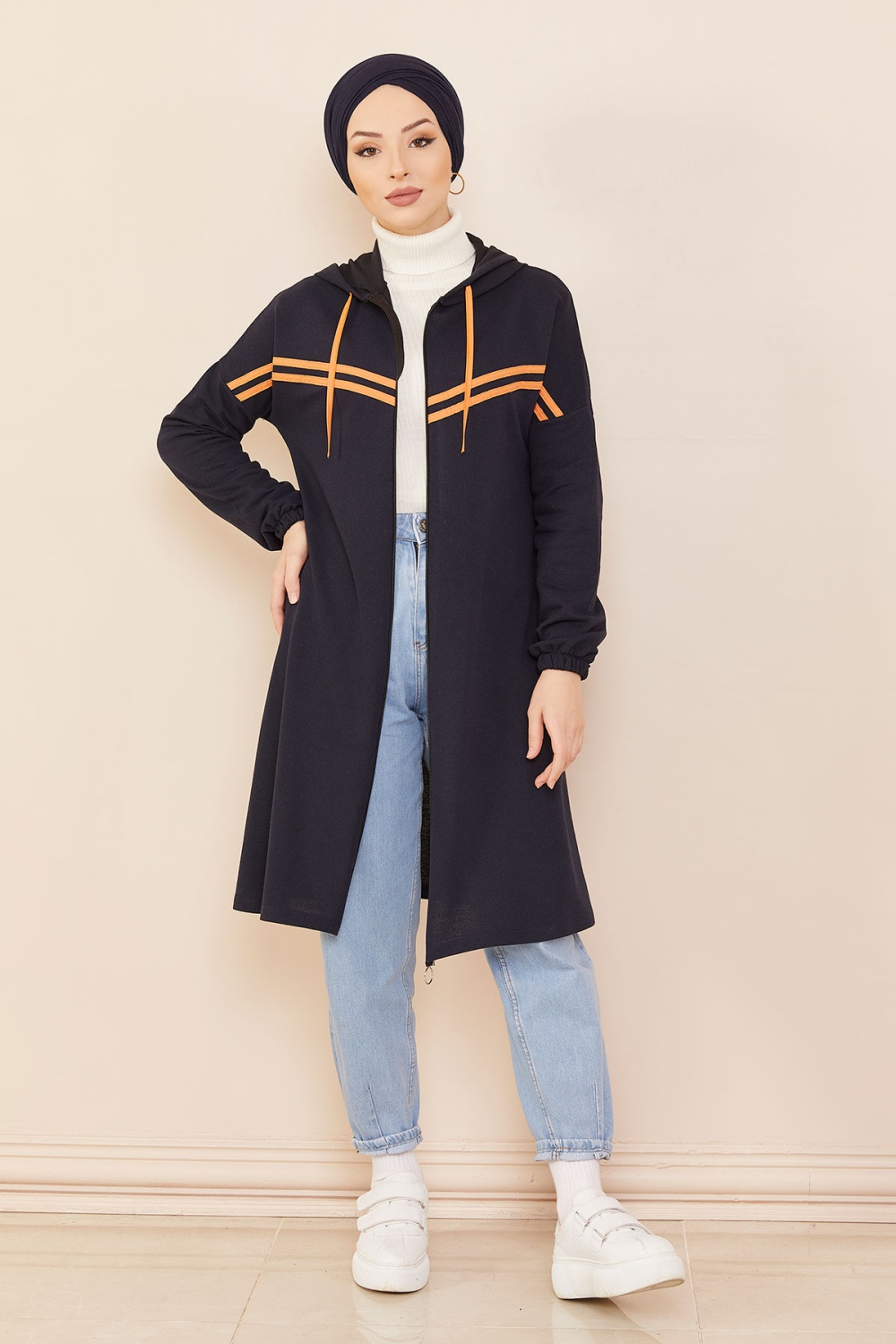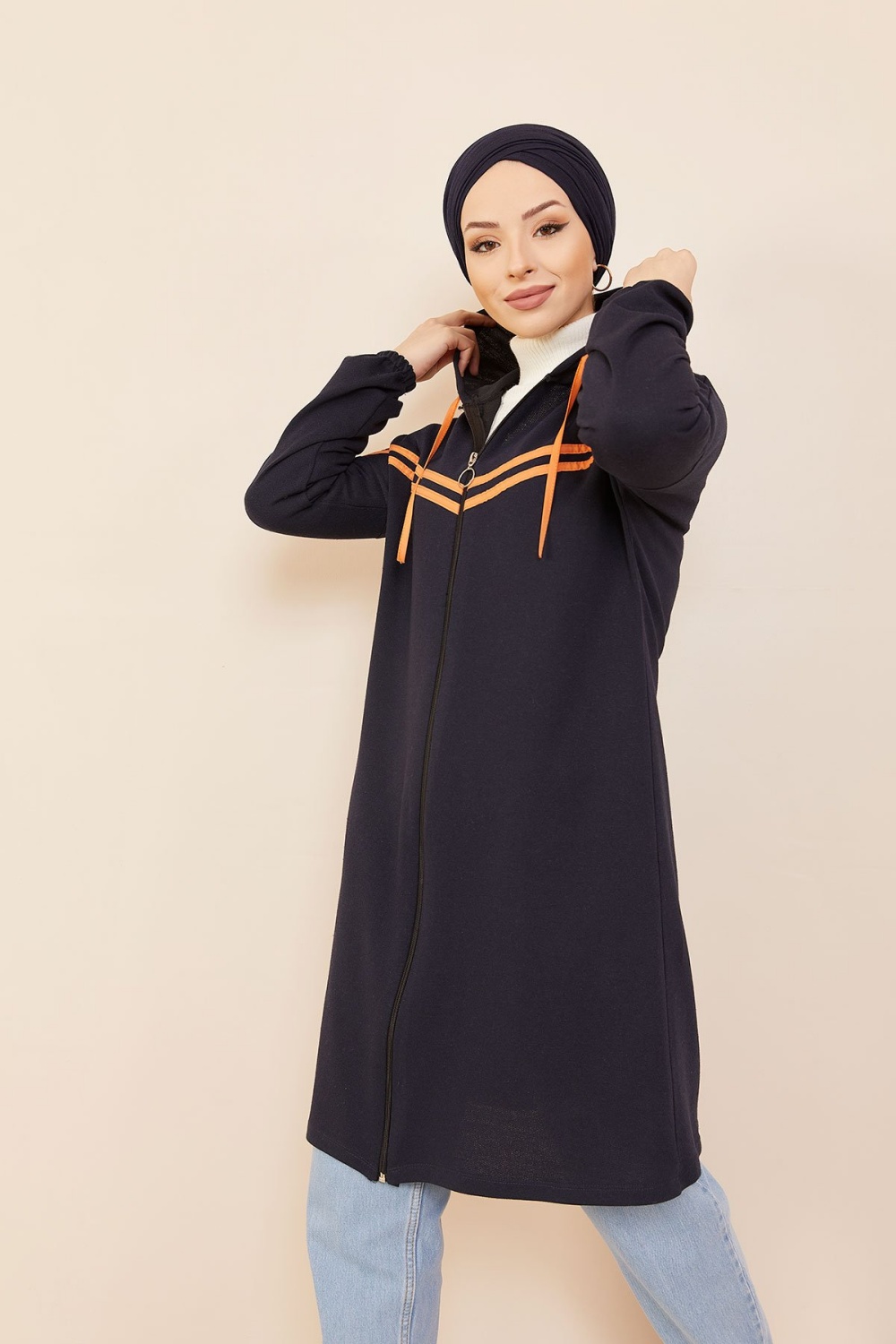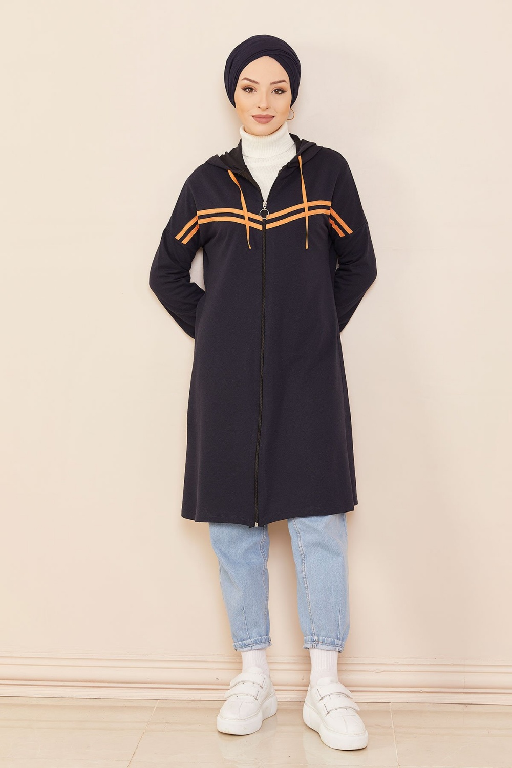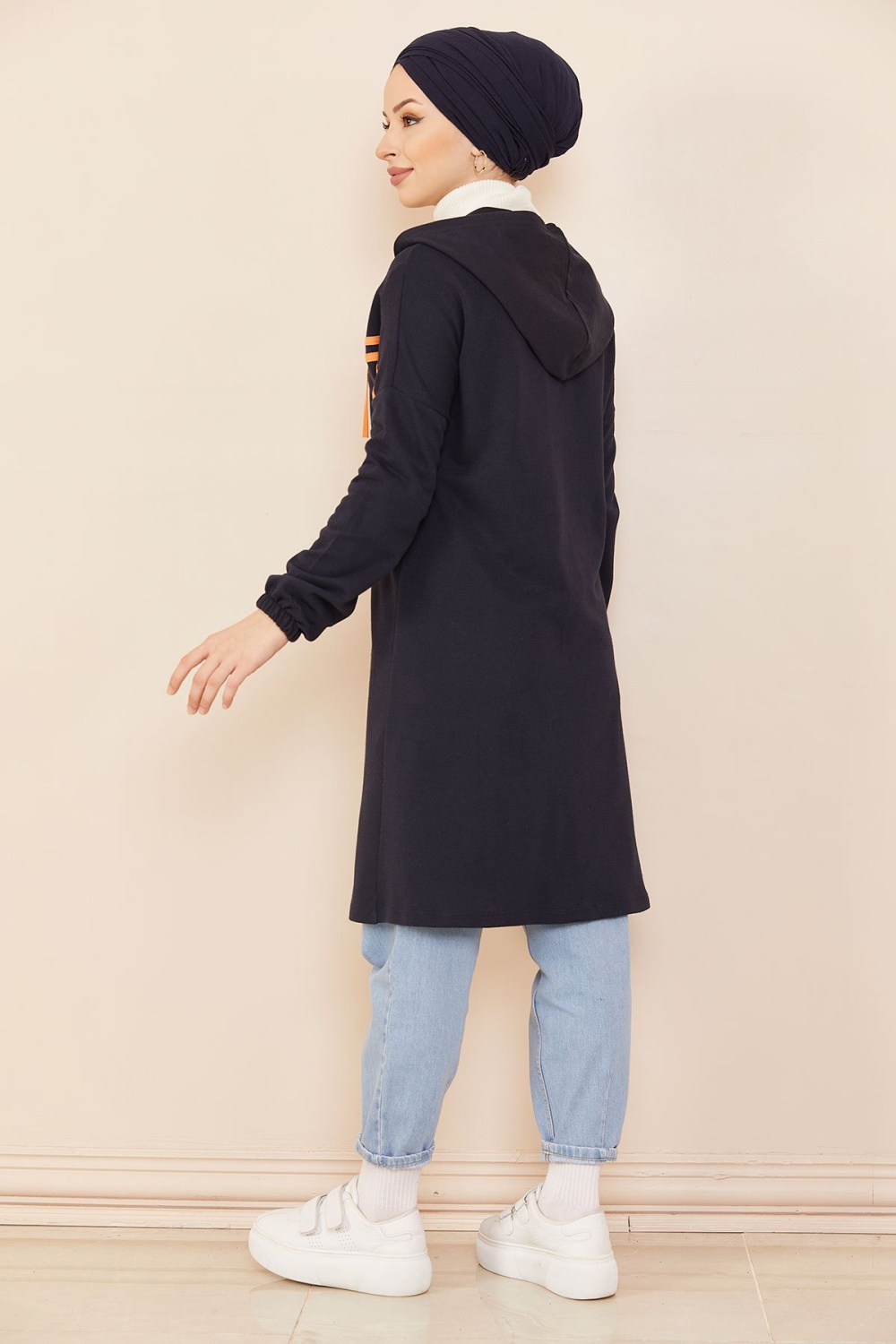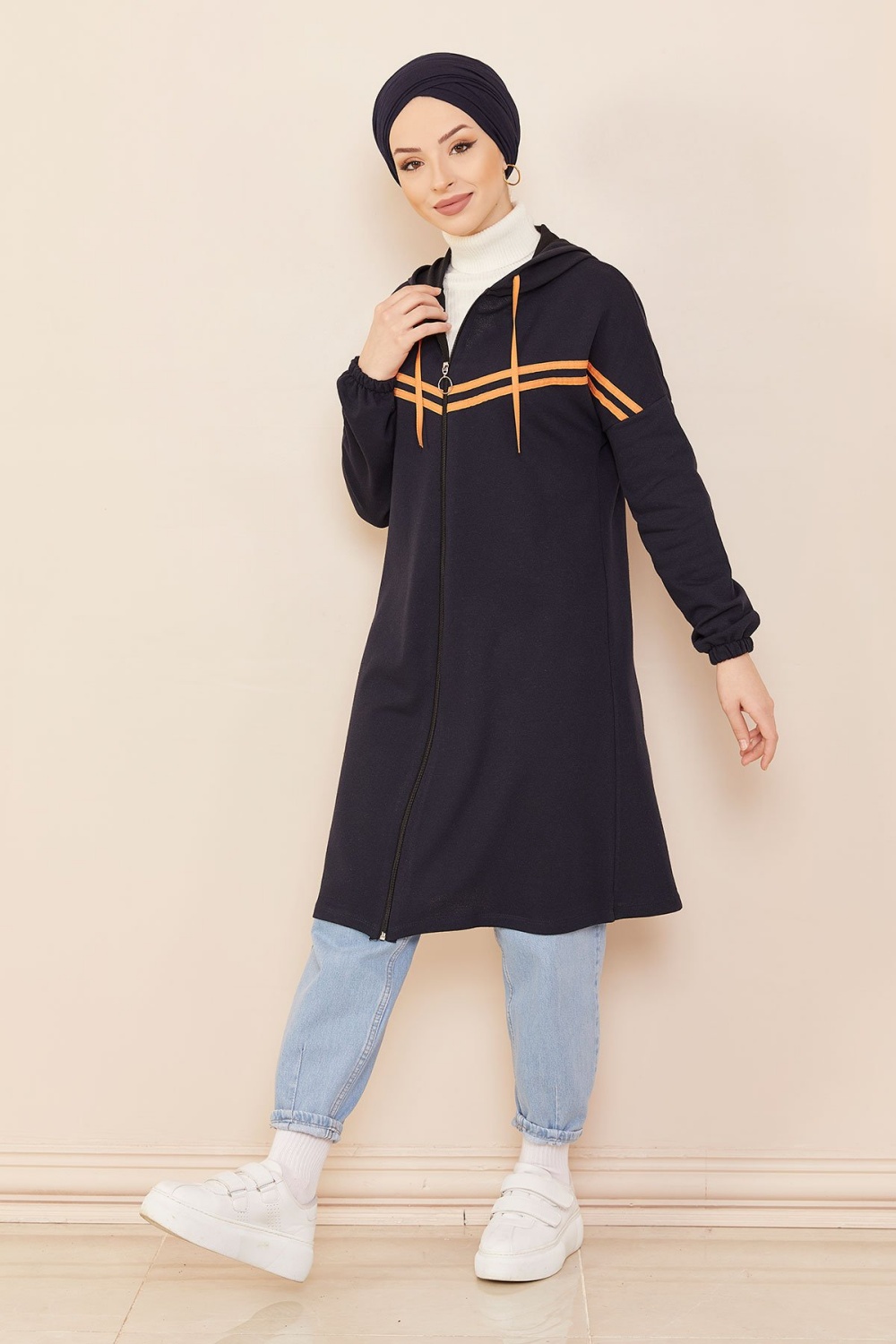 Tunique décontractée avec capuche (Sweat long pour hijab) - Couleur anthracite avec bandes blanches - REF. 35609 (19.00 €)
