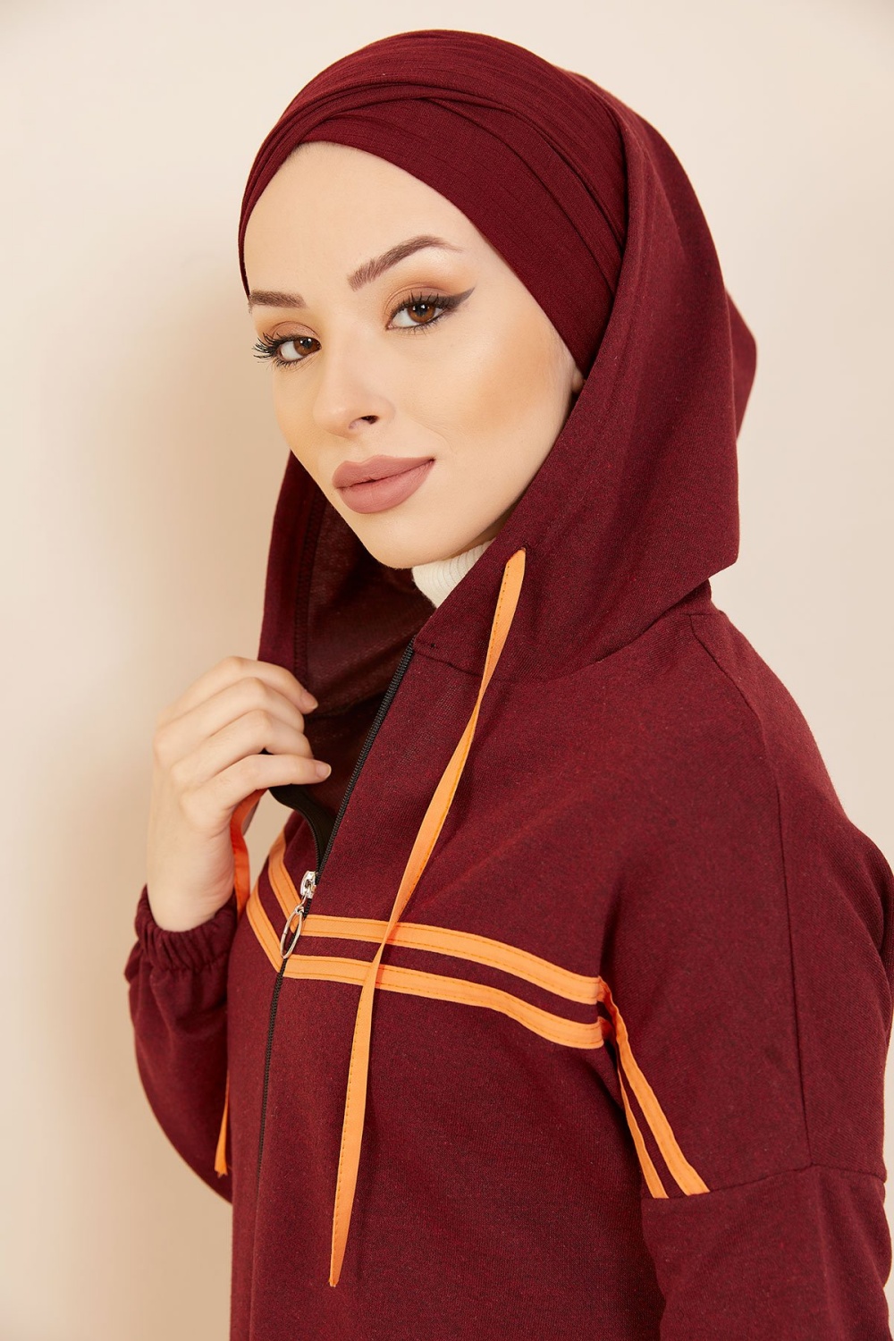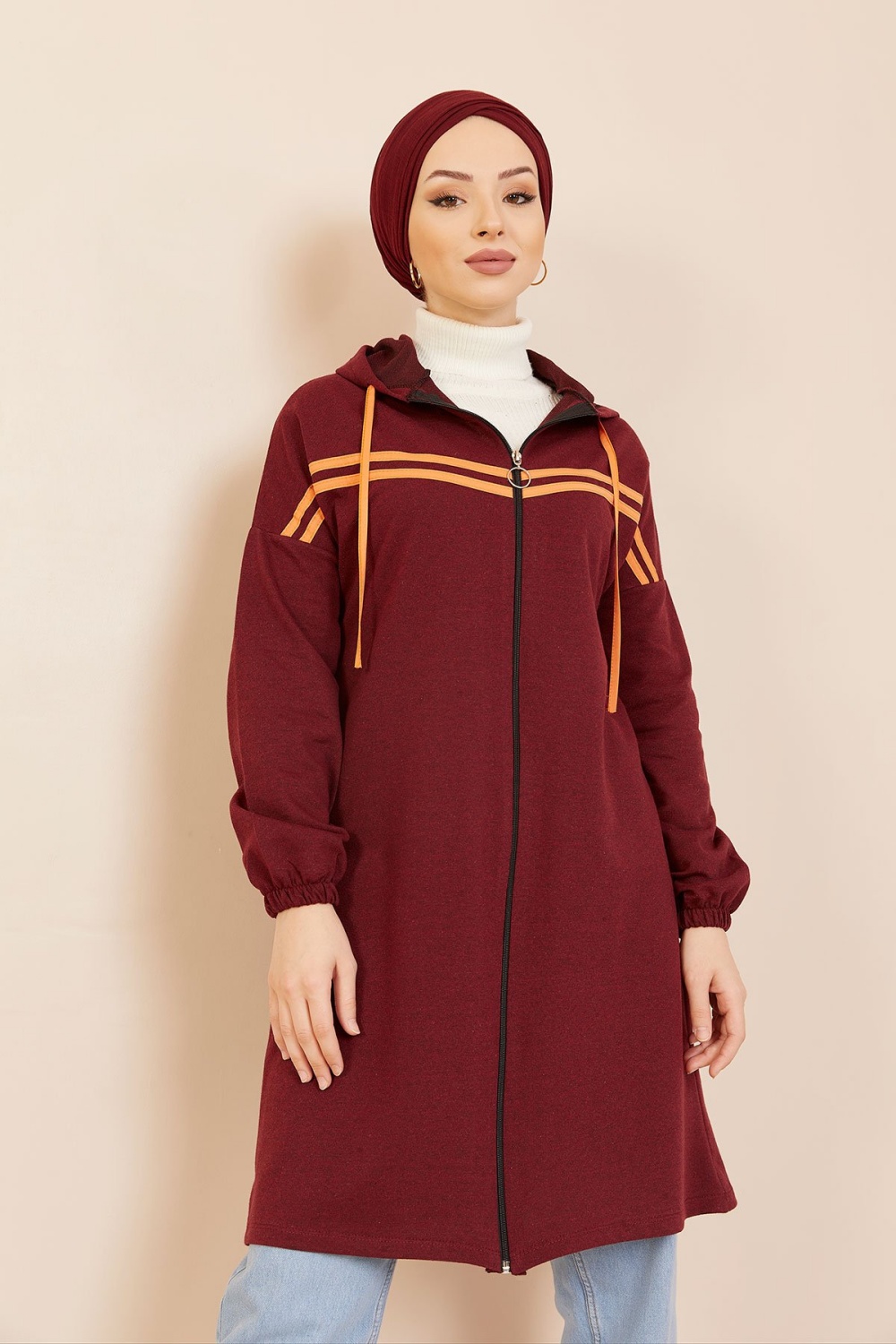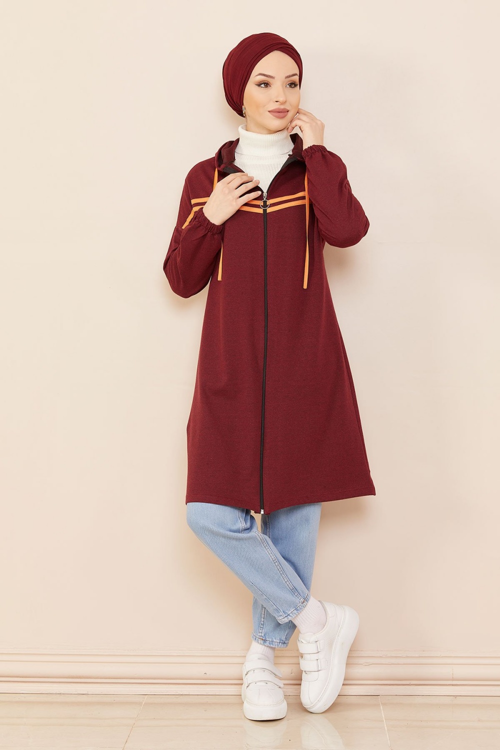 Tunique type sweat-shirt à capuche (Vêtement sport et tendance pour hijab) - Couleur vieux rose - REF. 38285 (22.00 €)