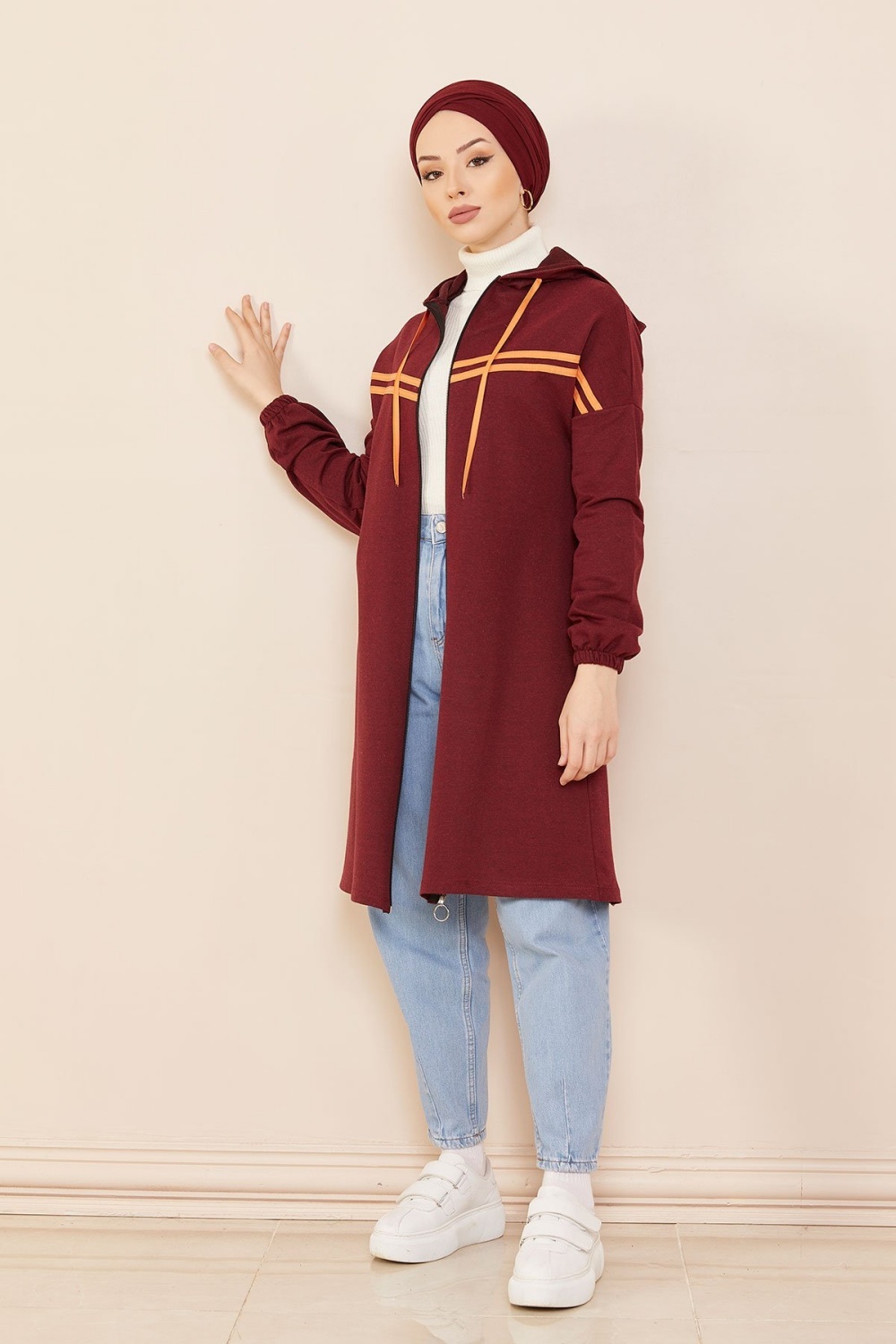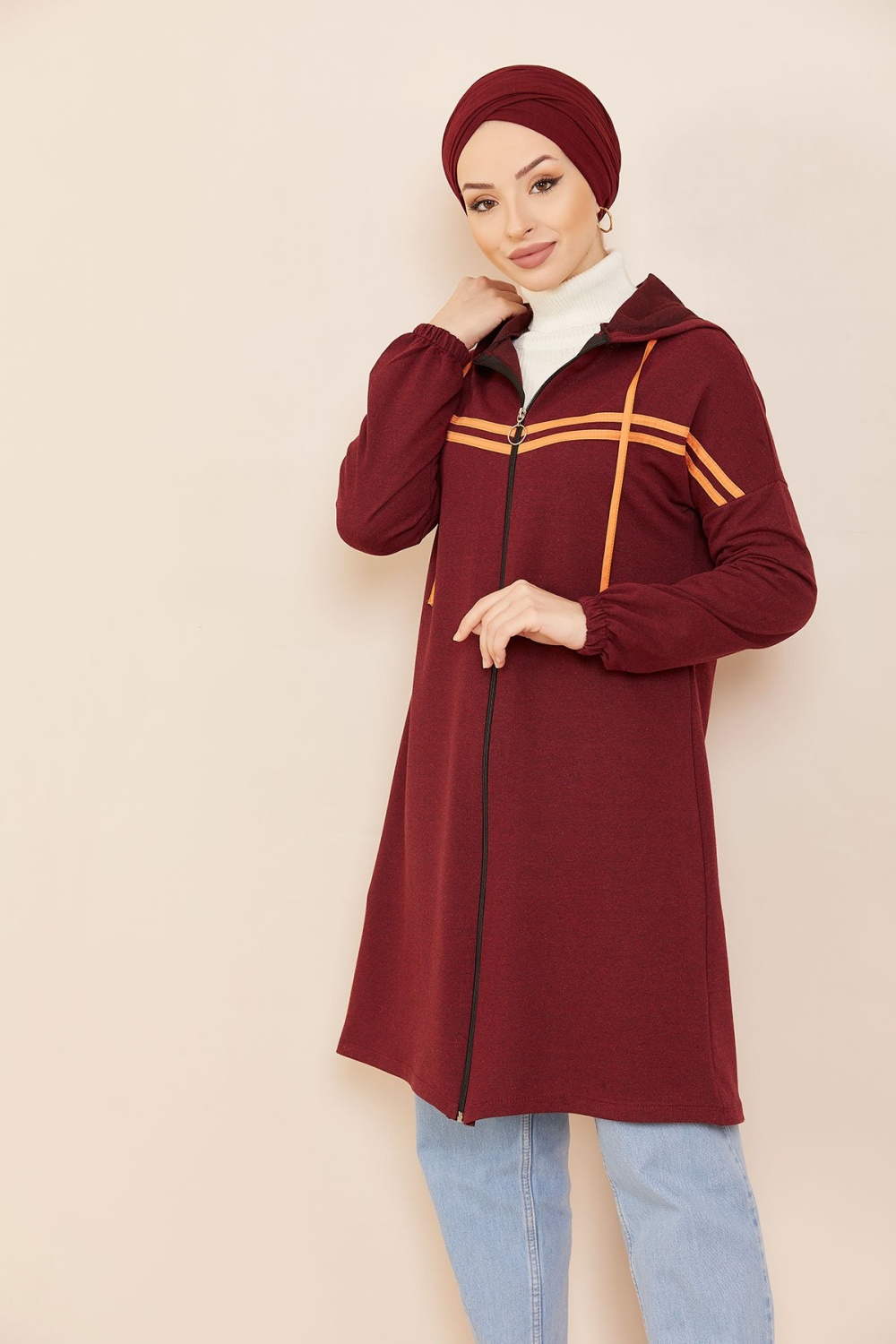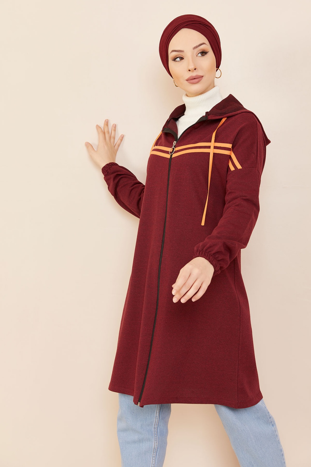 Tunique type sweat-shirt à capuche (Vêtement sport et tendance pour hijab) - Couleur vieux rose - REF. 38285 (22.00 €)