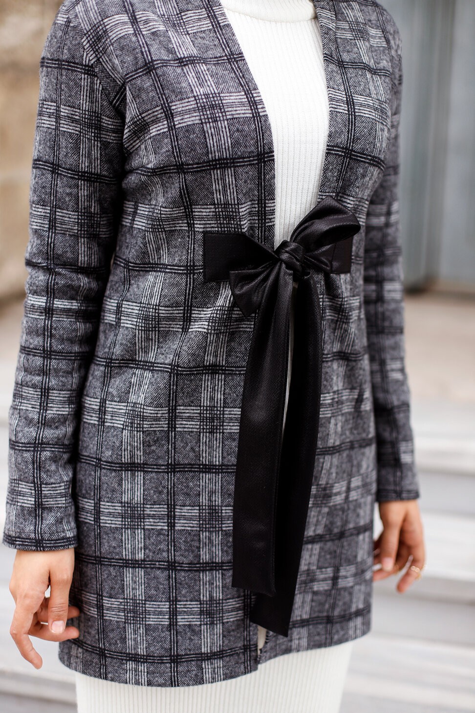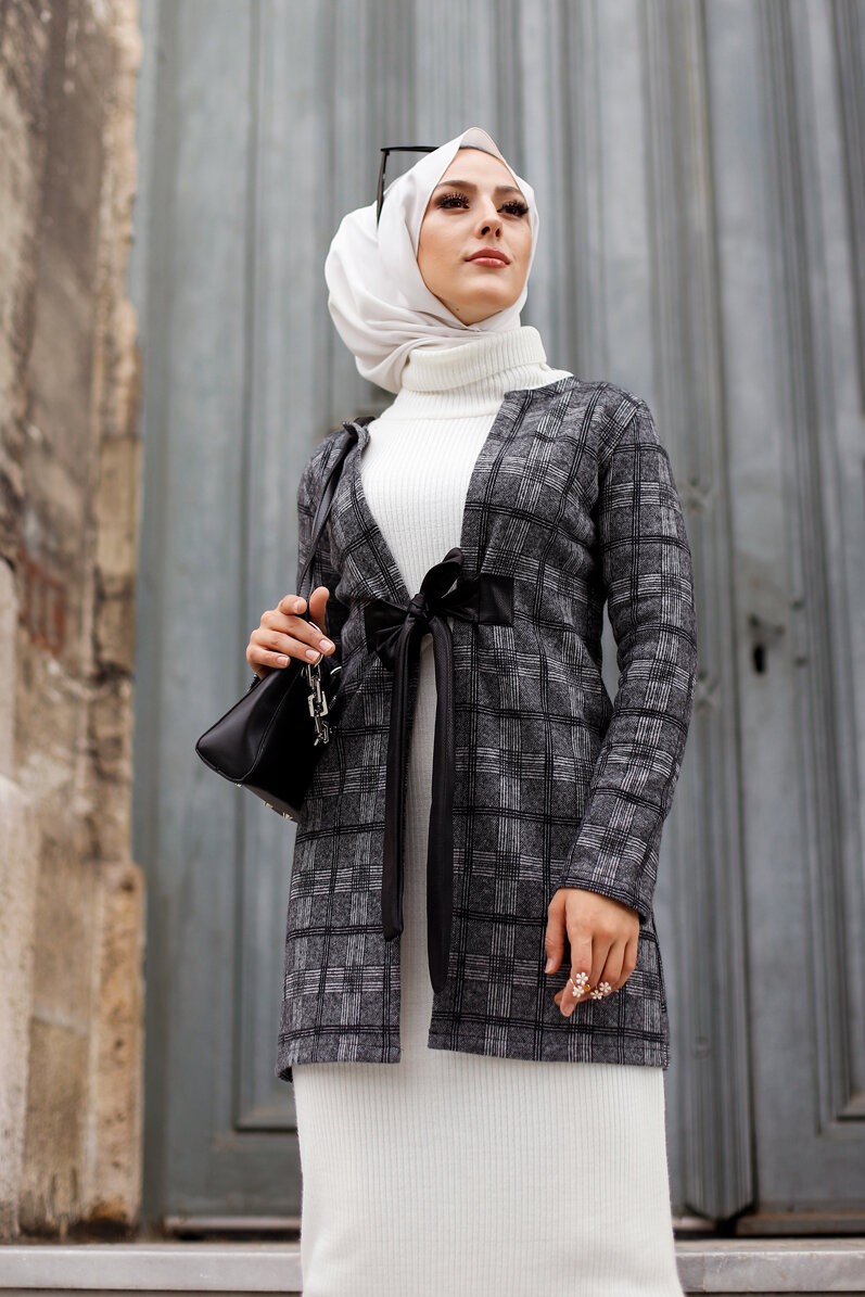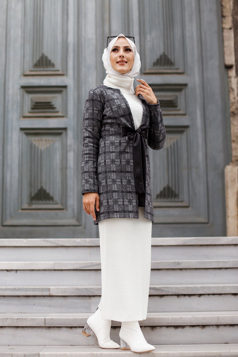Veste Manteau femme avec ceinture intégrée (Tunique Automne Hiver - Vêtement Hijab Turquie en ligne) - Couleur gris Vetement & Accessoire