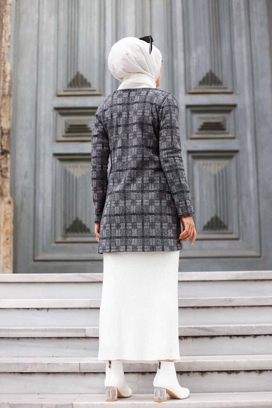 Robe à carreaux (Vetement hijab moderne) - Couleur anthracite et rouge - REF. 35217 (24.90 €)