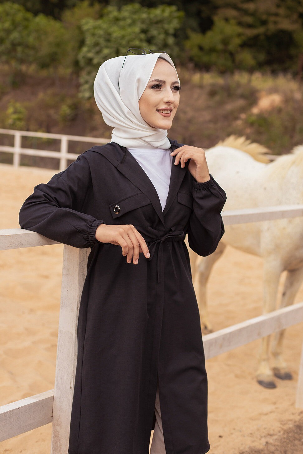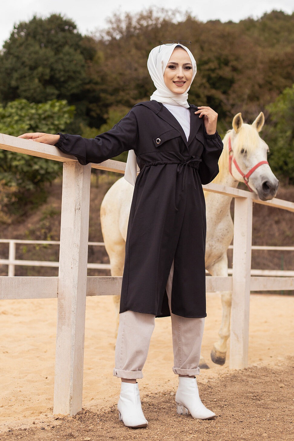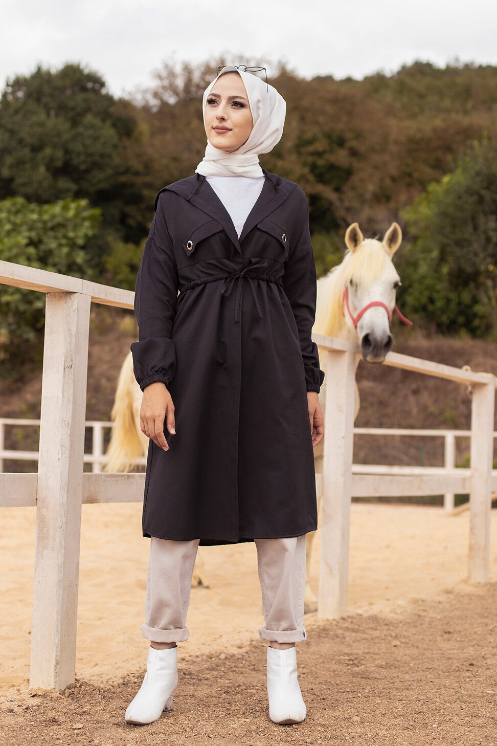 Veste-Trench a capuche pour femme (Mode musulmane) - Couleur noir