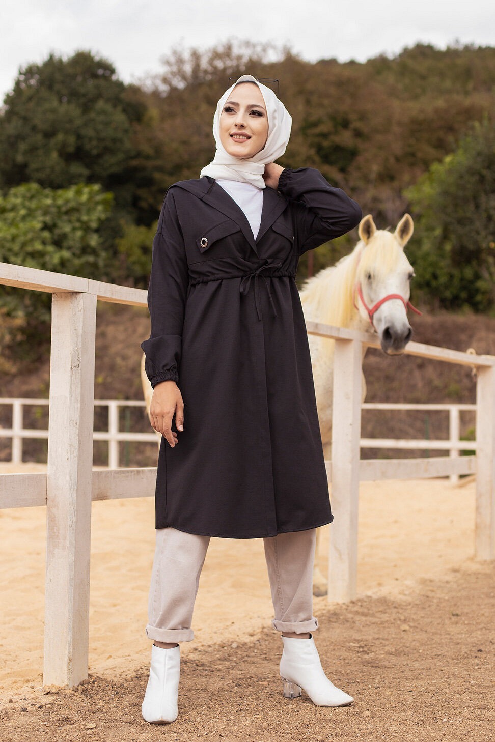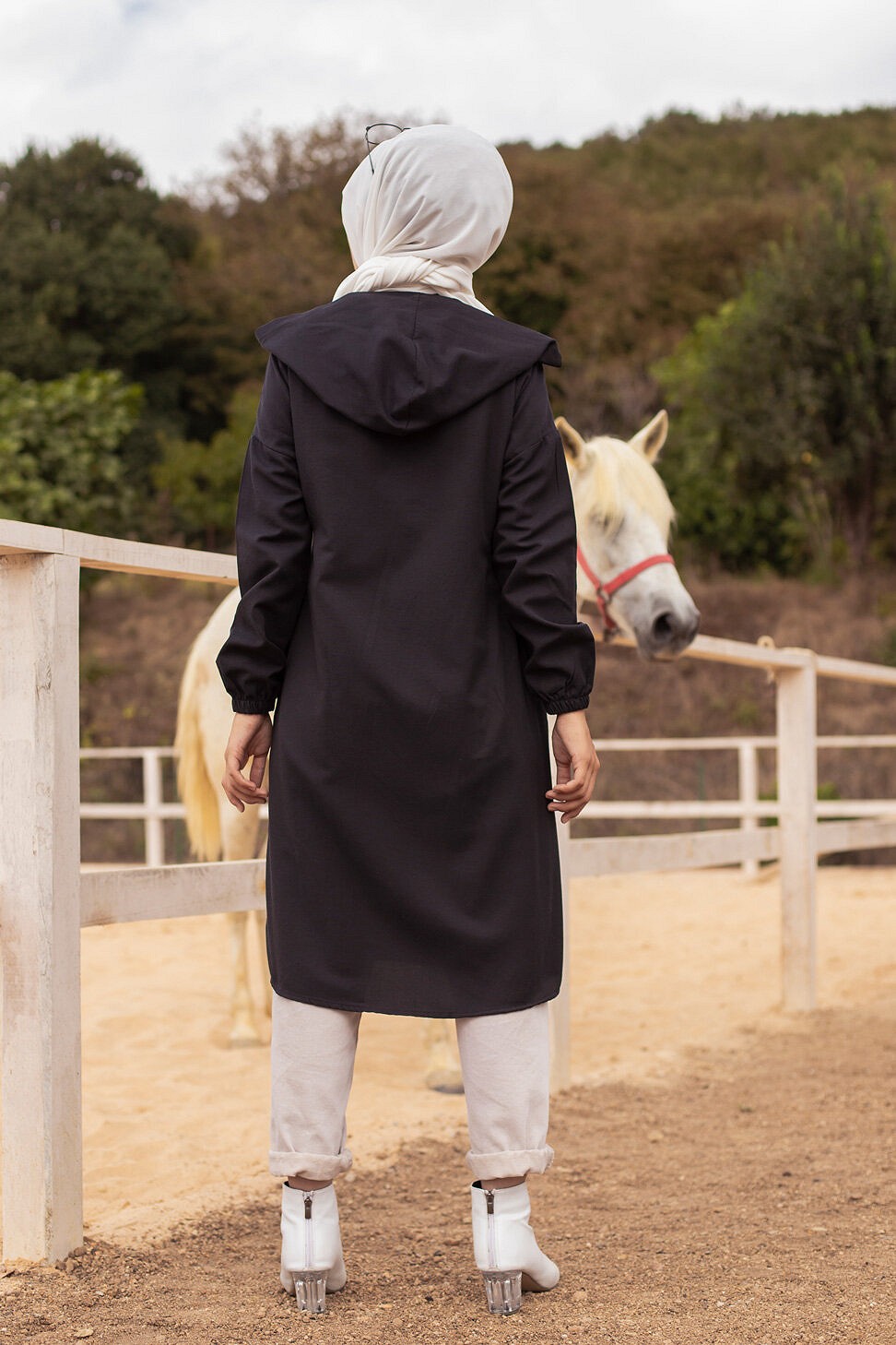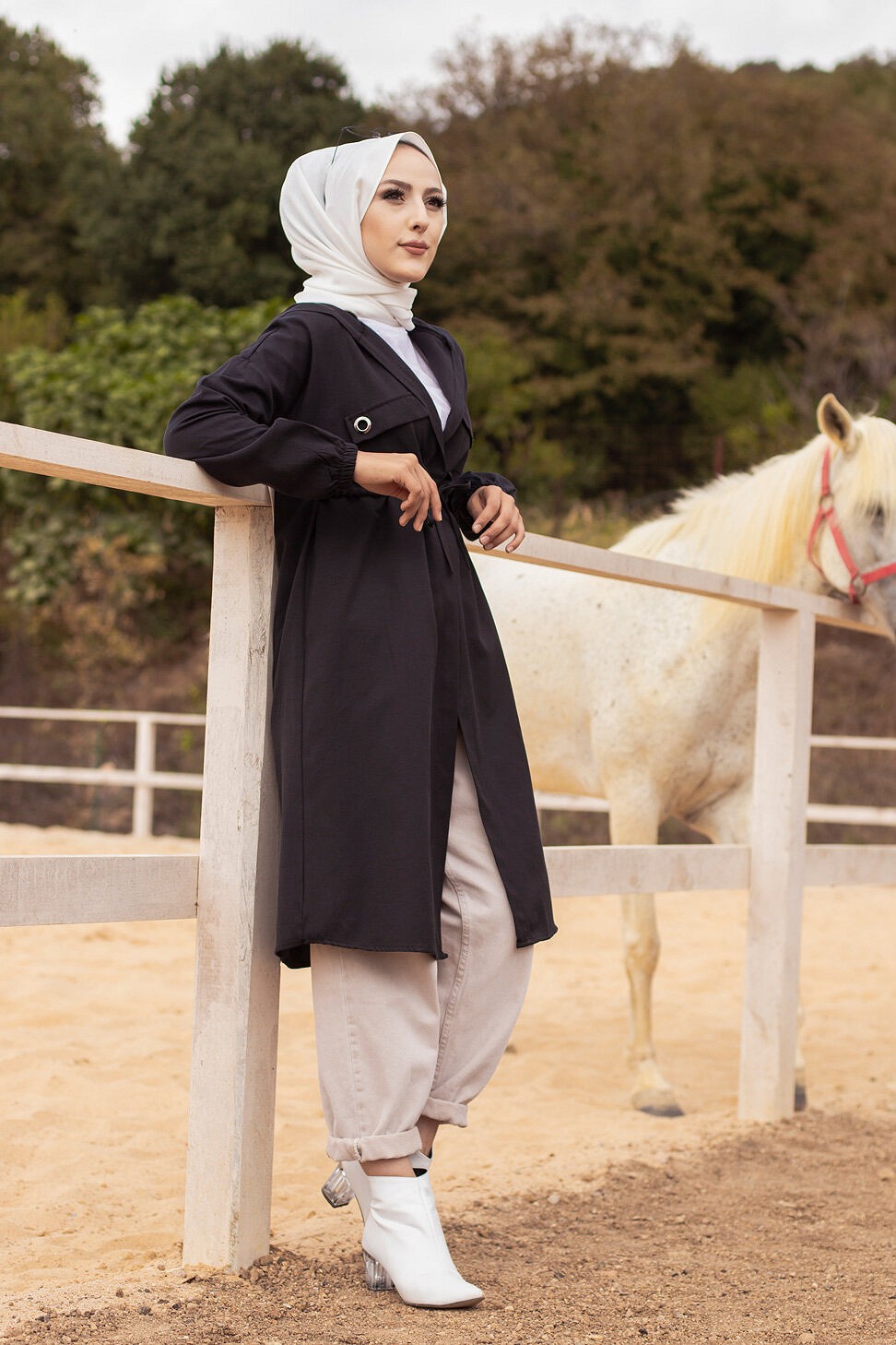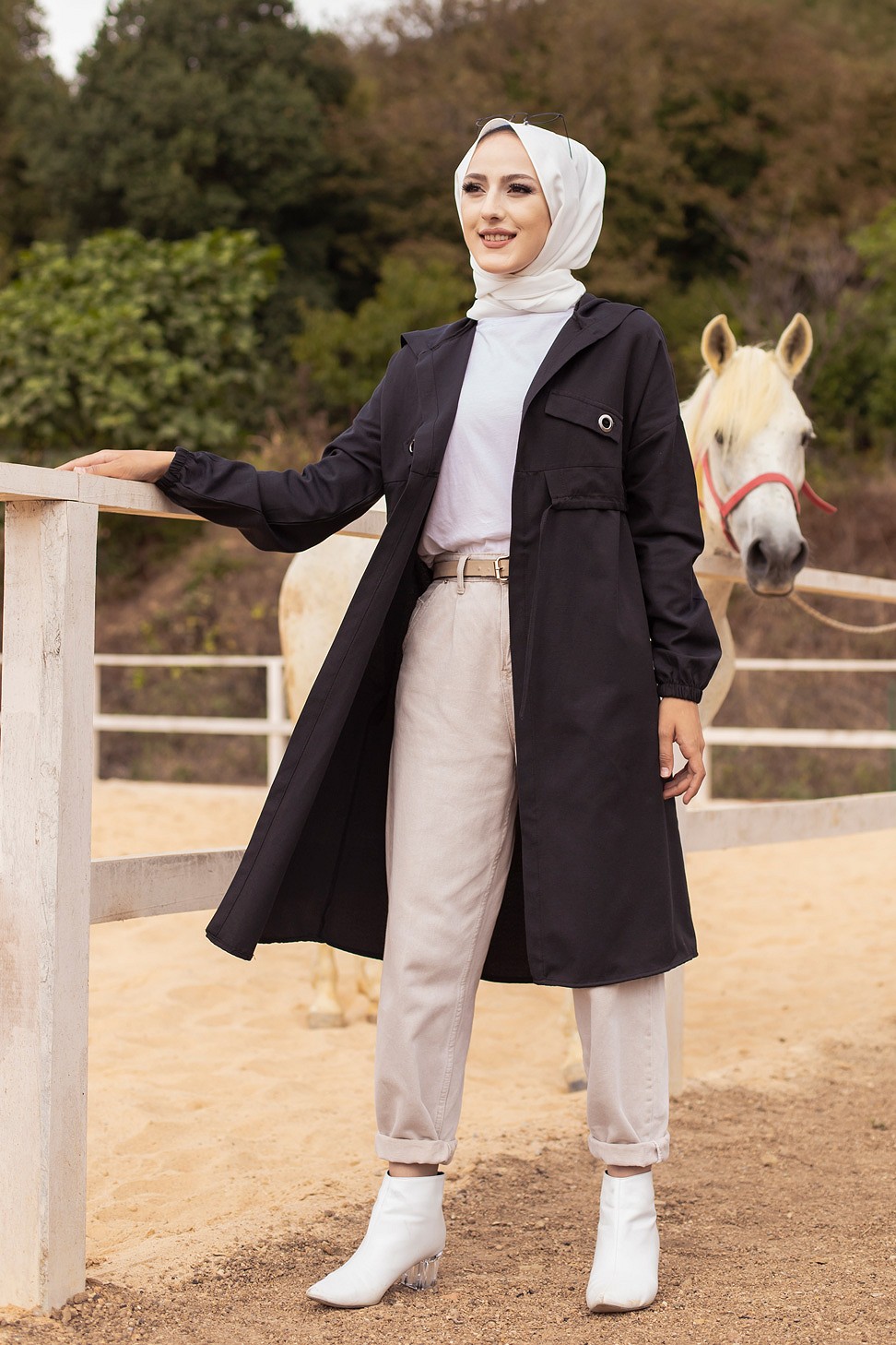 Veste-Trench a capuche pour femme (Mode musulmane) - Couleur noir