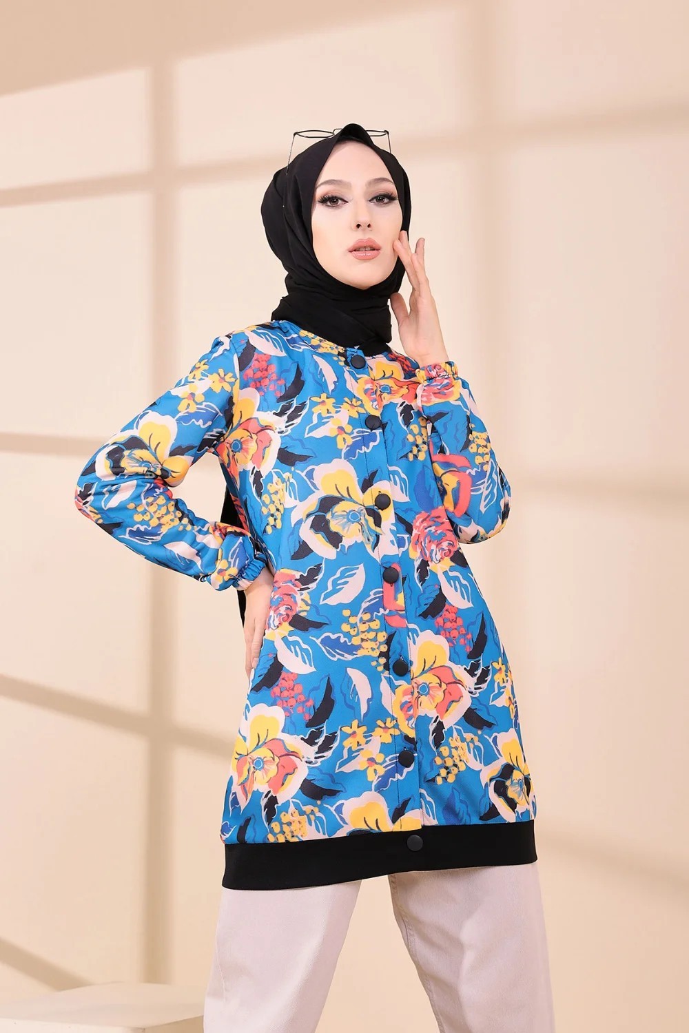 Veste Tunique avec motifs fleurs pour femme - Couleur bleu Vetement & Accessoire