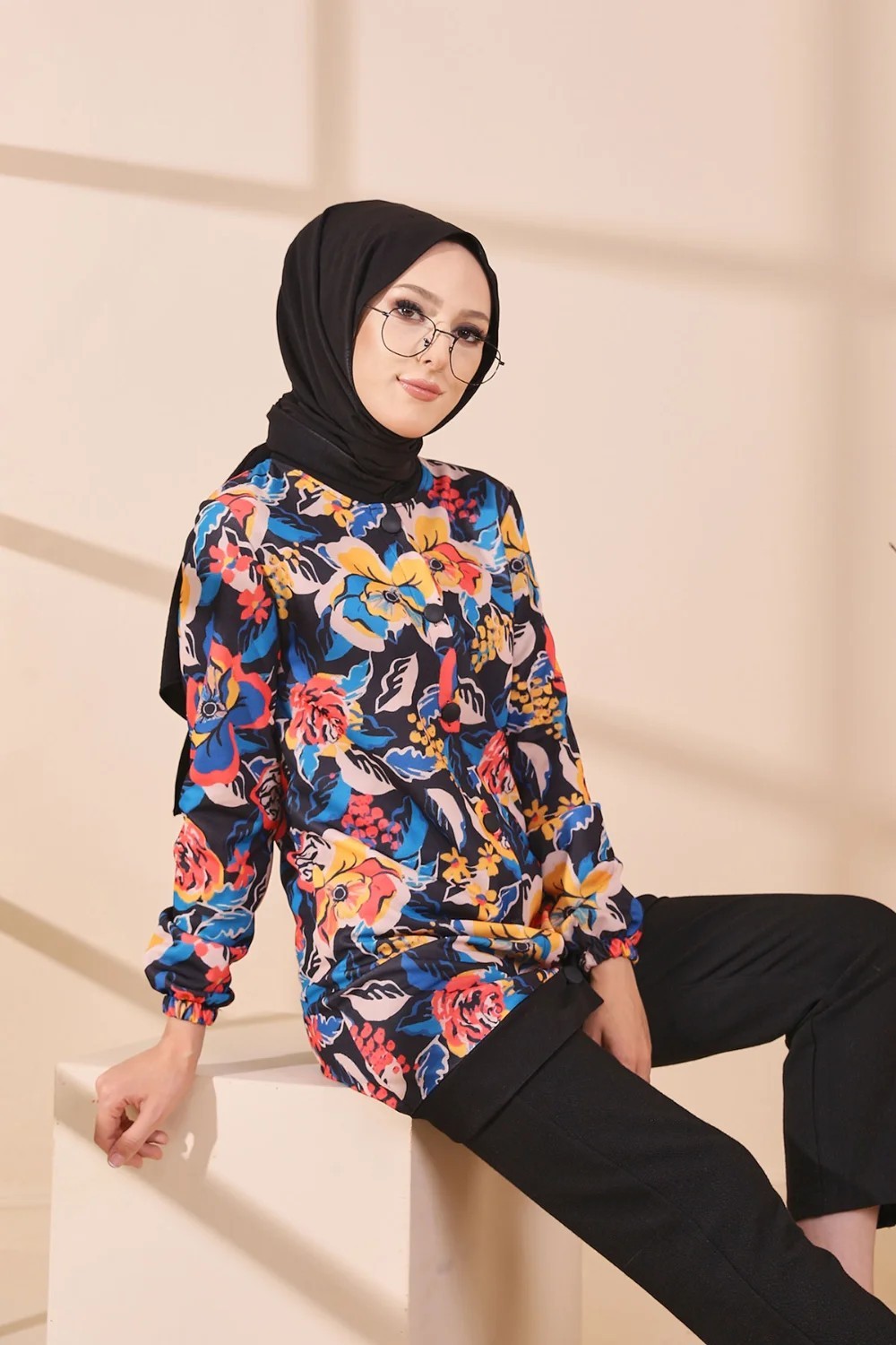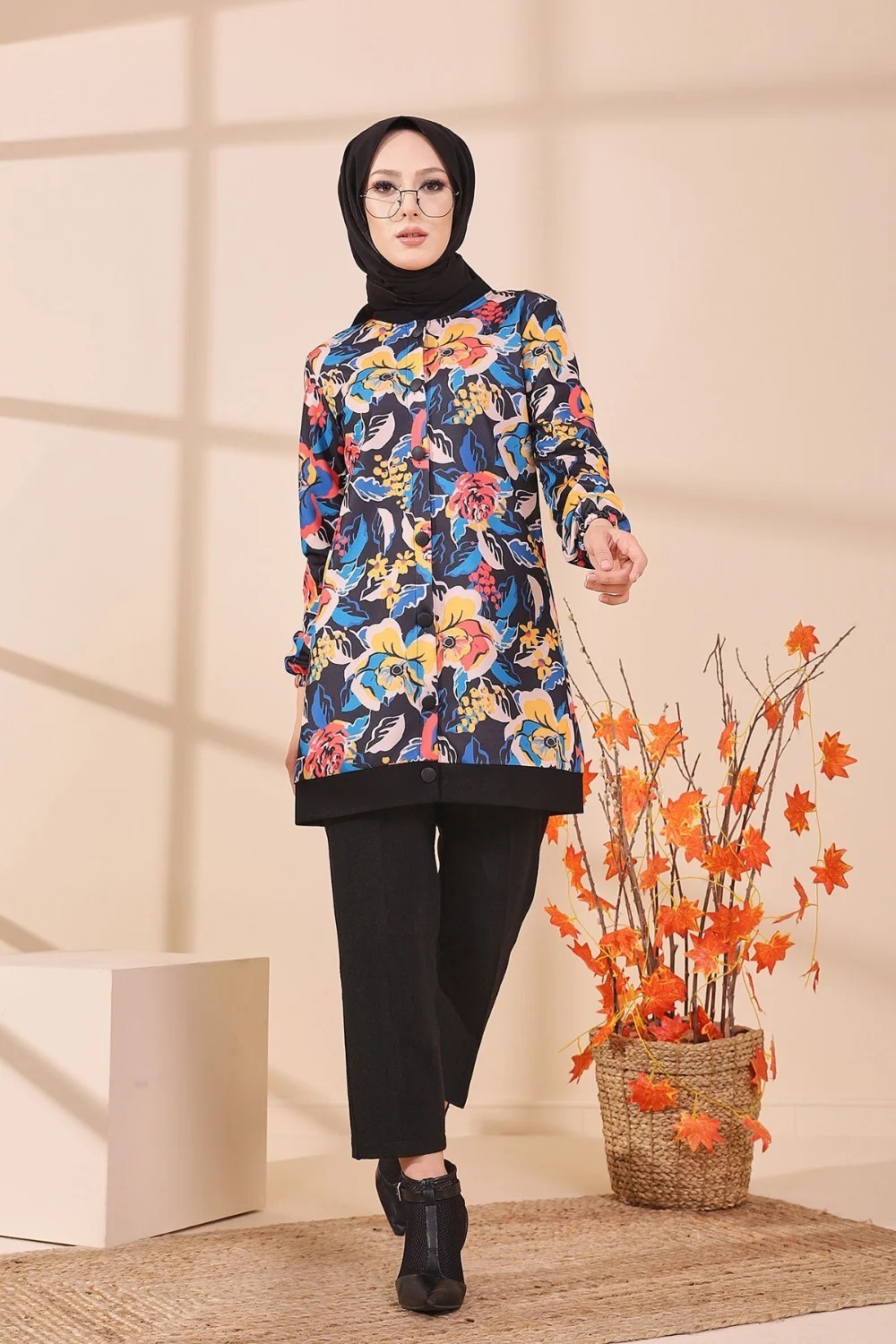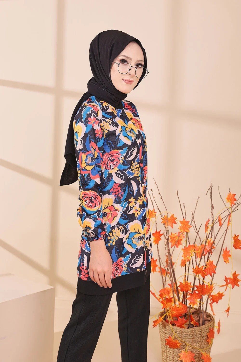 Tunique imprimée avec motifs étoiles (Star Modest Fashion- Mode Musulmane pour femme voilée) - Couleur noir - REF. 32195 (18.00 €)