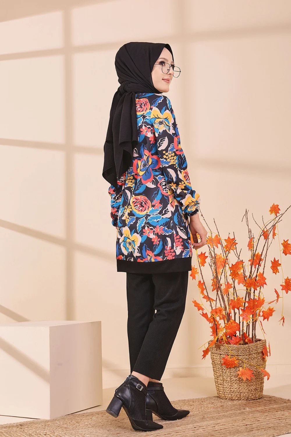 Veste Tunique avec motifs fleurs pour femme - Couleur noir Vetement & Accessoire