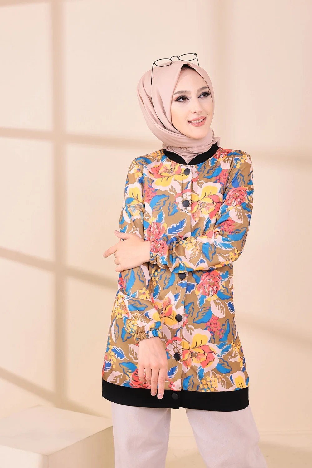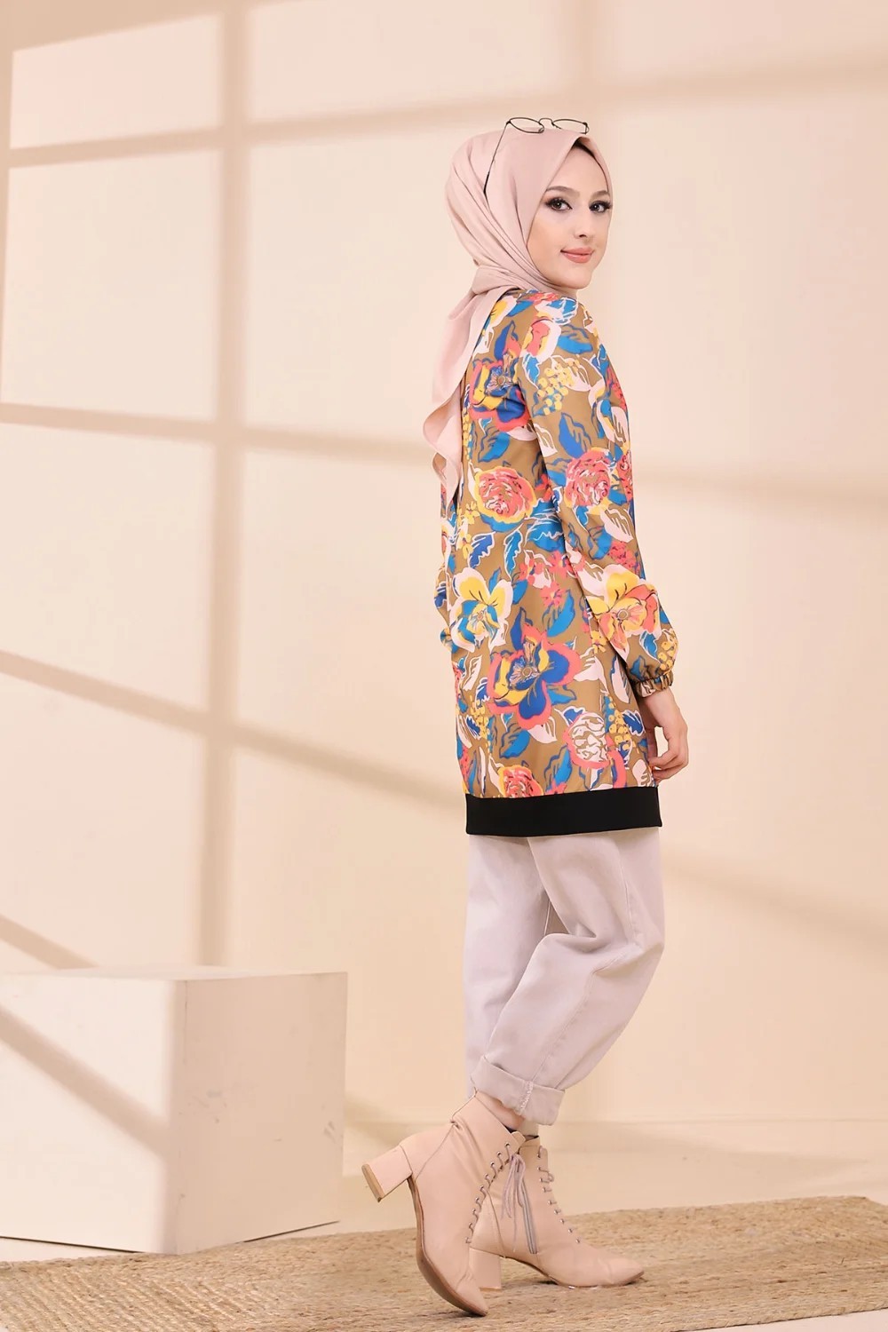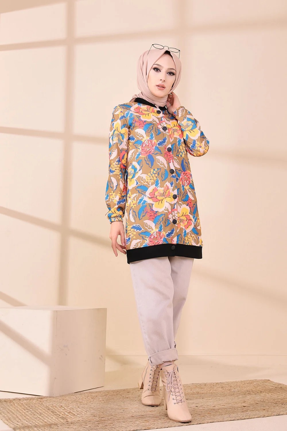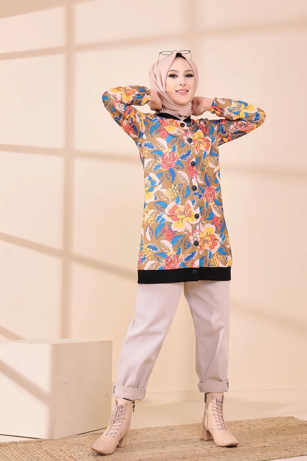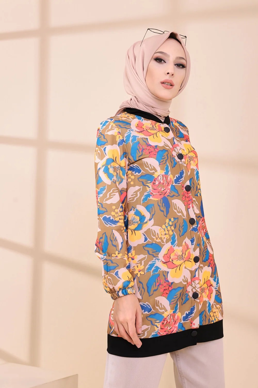 Veste Tunique fleurie pour femme - Couleur moutarde Vetement & Accessoire
