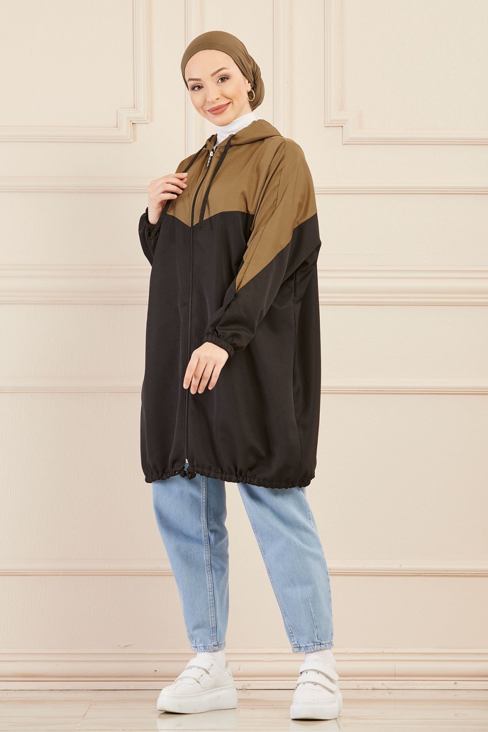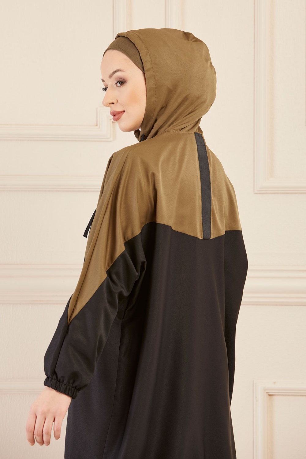 Robe moderne décontractée à capuche pour femme (Modest Fashion) - Couleur noir blanc et kaki - REF. 32965 (24.90 €) - En Promotion à 17.90 €