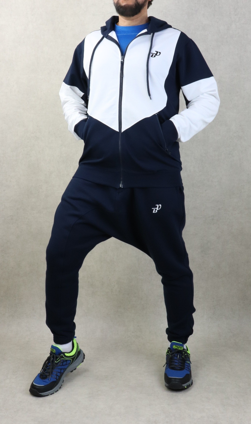 Veste jogging molletonné bicolore à capuche de marque Best Ummah - Couleur Bleu marine et blanc - REF. 36721 (29.00 €)