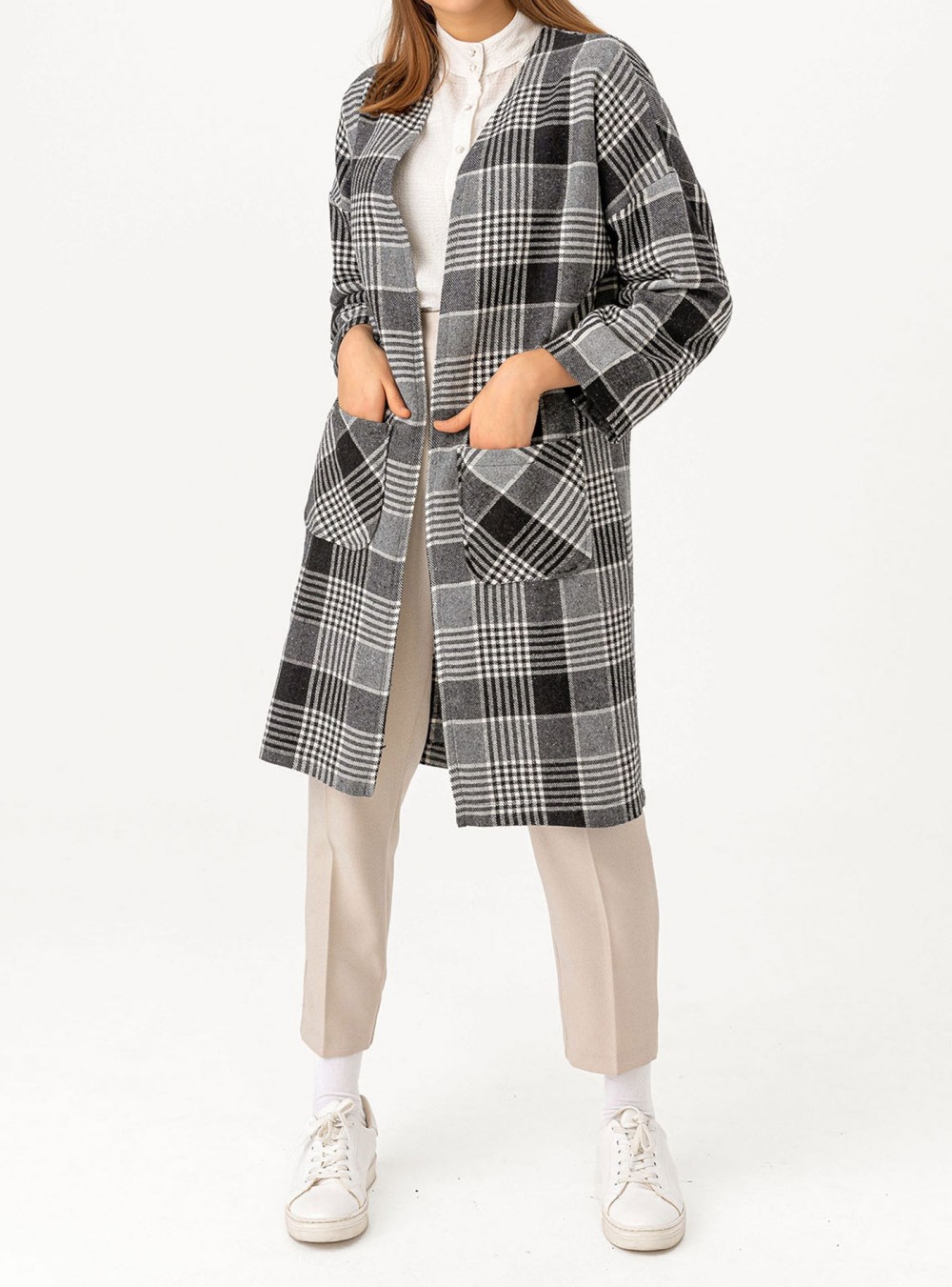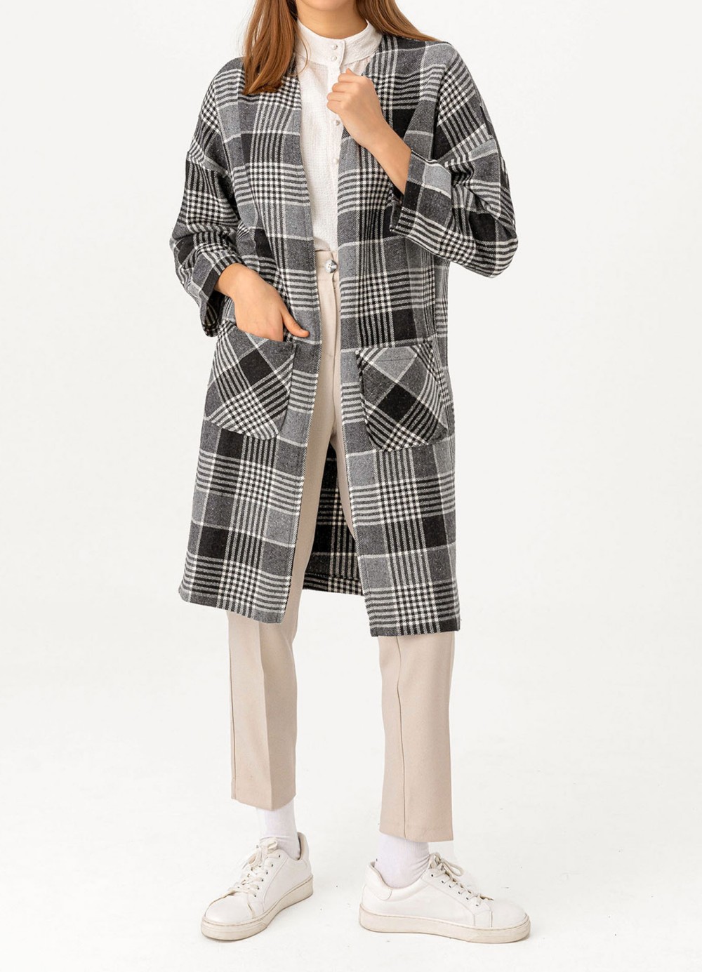 Robe Salopette femme à carreaux de couleur noire et kaki (Tenue Hijab et Modest Fashion) - REF. 32216 (18.00 €) - En Promotion à 14.90 €