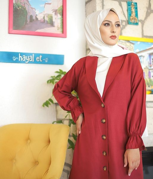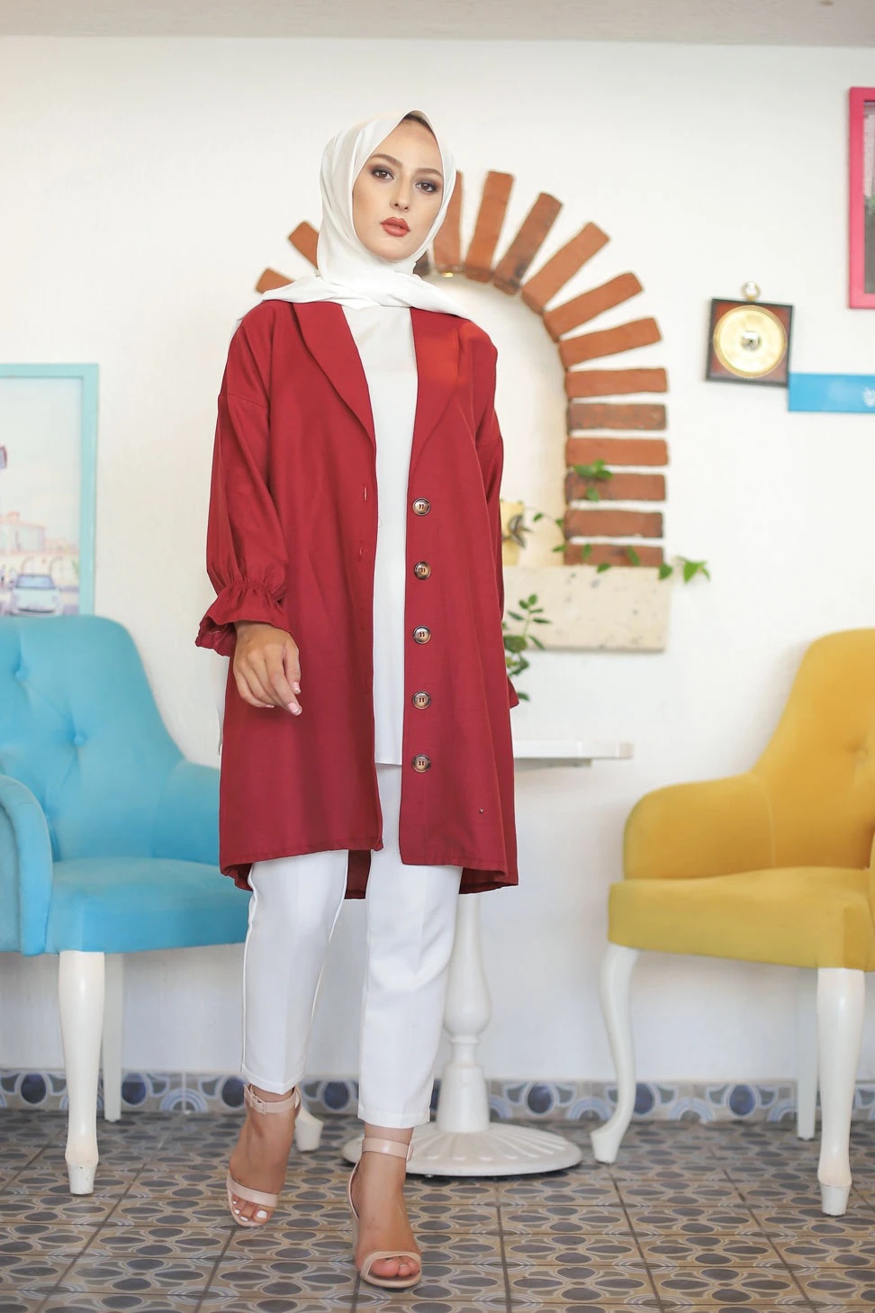 Veste longue classique boutonnée élégante (Vêtement Hijab) - Couleur framboise Vetement & Accessoire