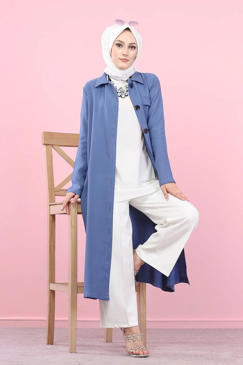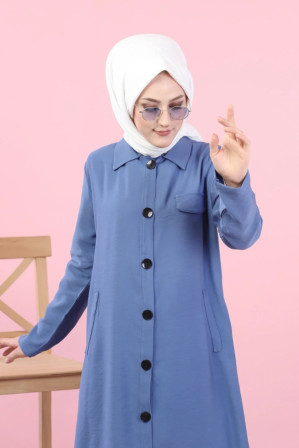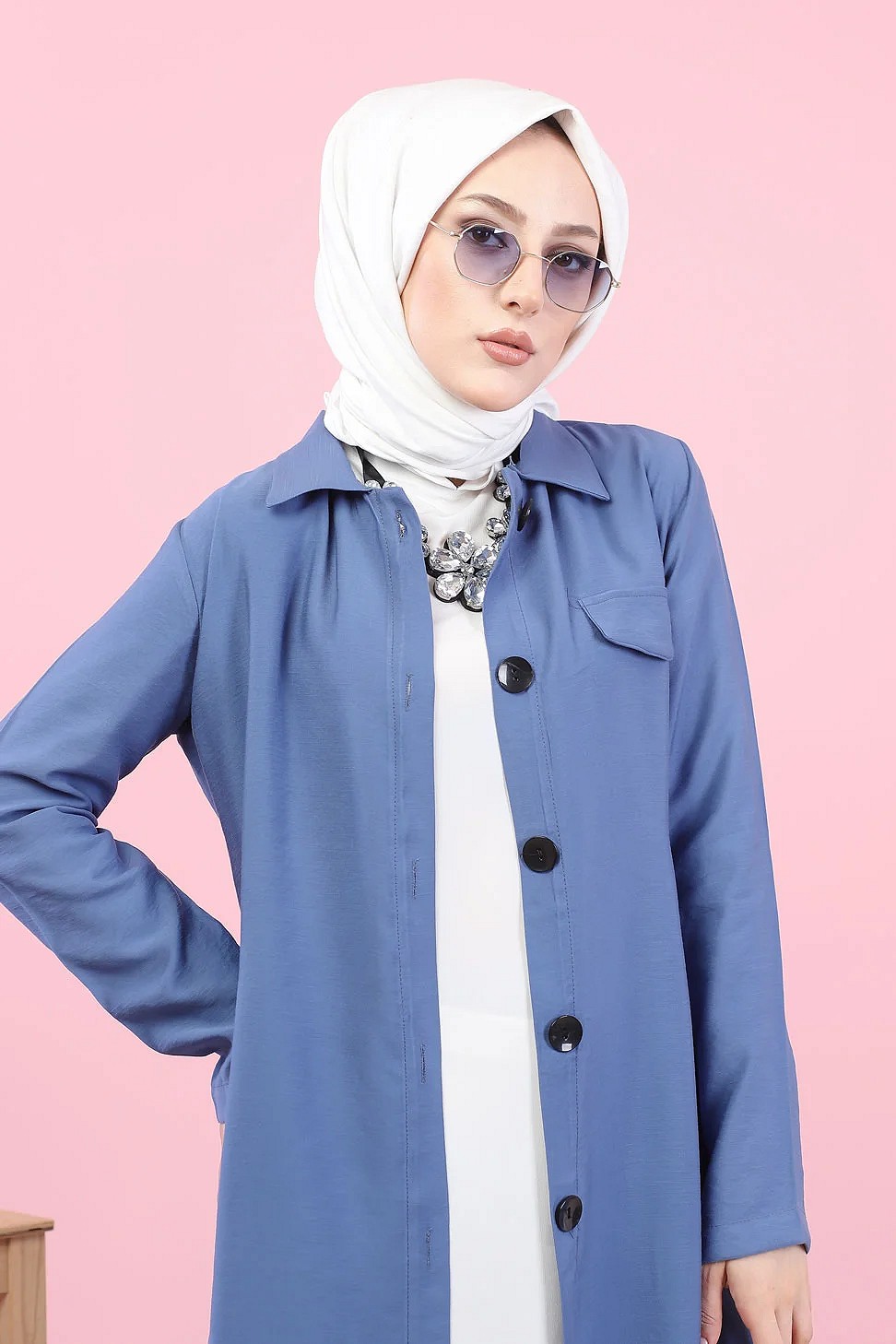 Veste longue pour femme - style chemise (Mode Musulmane) - Couleur bleu indigo Vetement & Accessoire