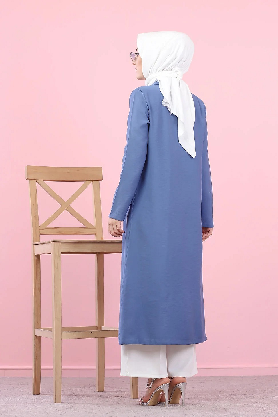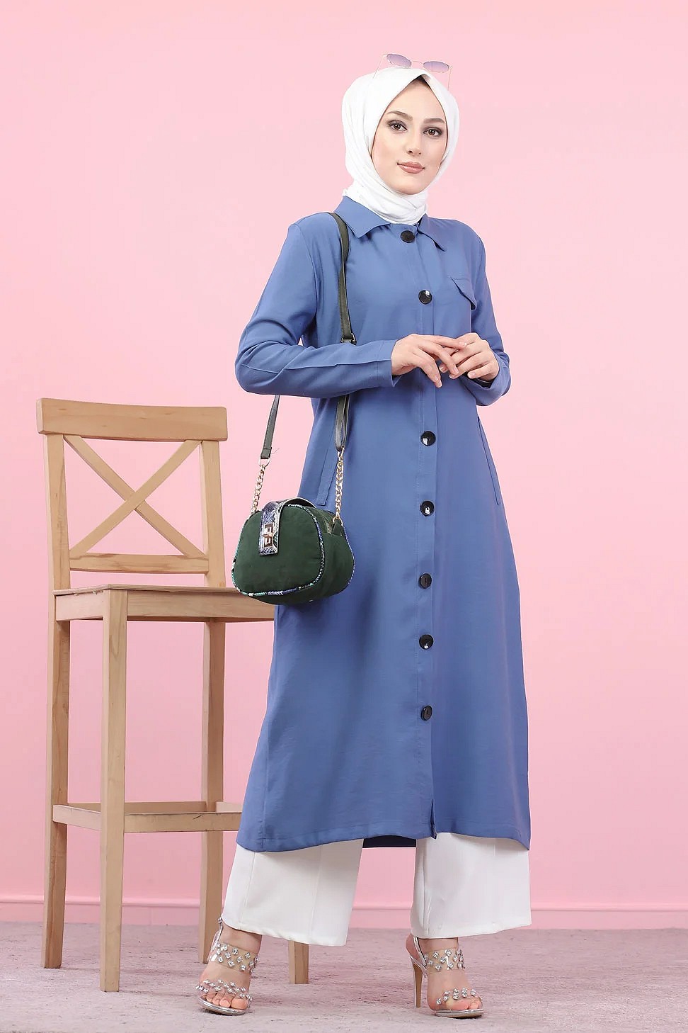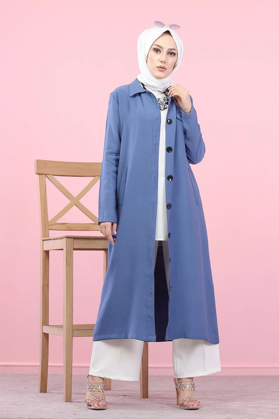 Veste longue pour femme - style chemise (Mode Musulmane) - Couleur bleu indigo Vetement & Accessoire