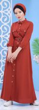 Trench coat Long pour femme (Vetement Mode Musulmane en ligne) - Couleur brique - REF. 30879 (29.90 €)
