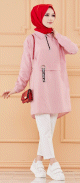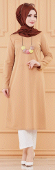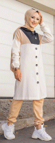 Veste Tunique boutonnée à capuche (Vetement décontracté femme hijab) - Couleur beige - REF. 31894 (19.90 €)