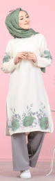 Tunique écru avec motifs fleuris vert amande - REF. 32296 (18.00 €)