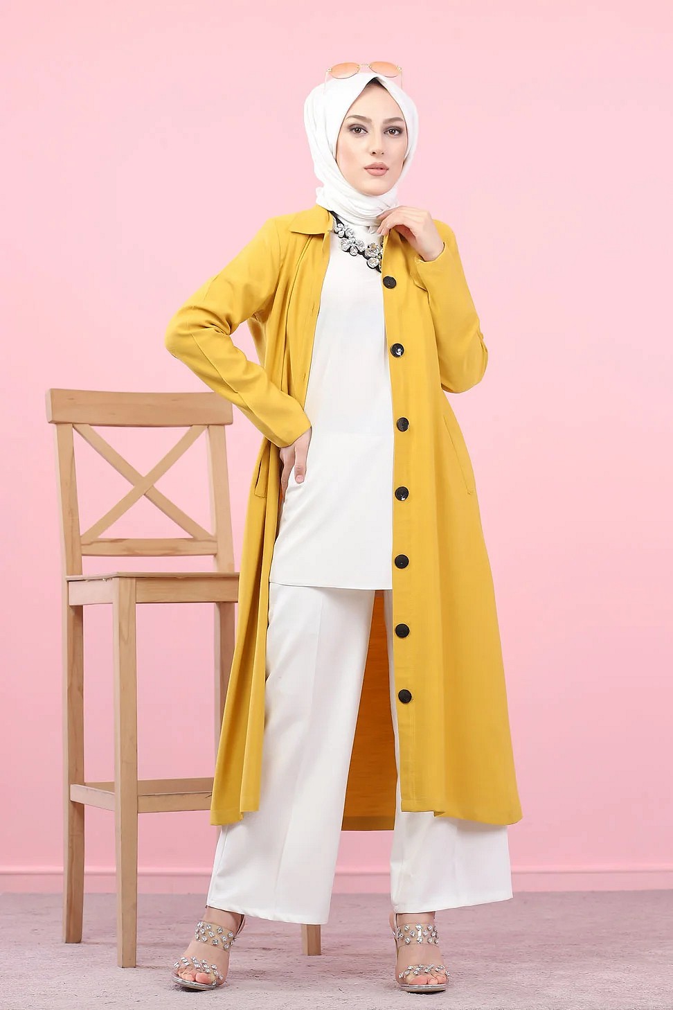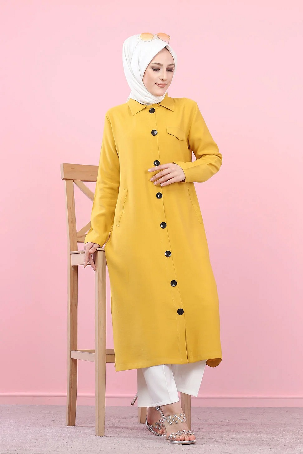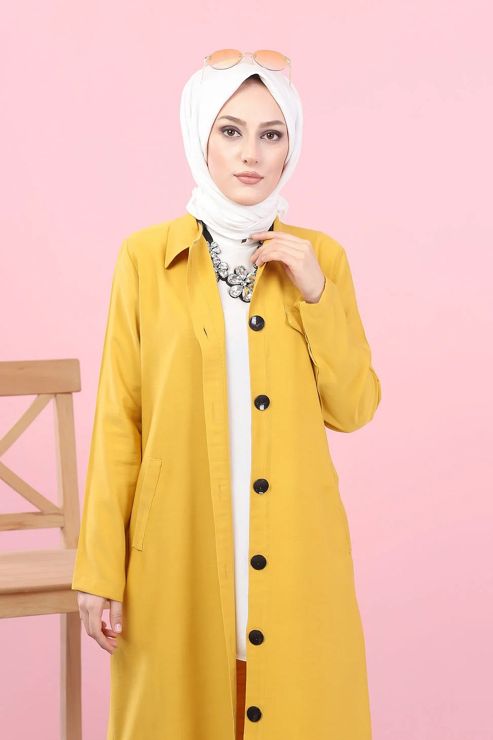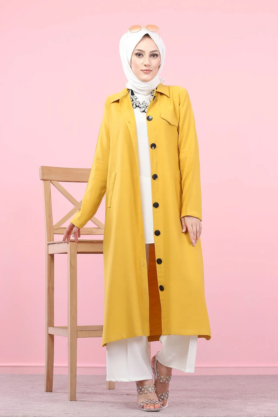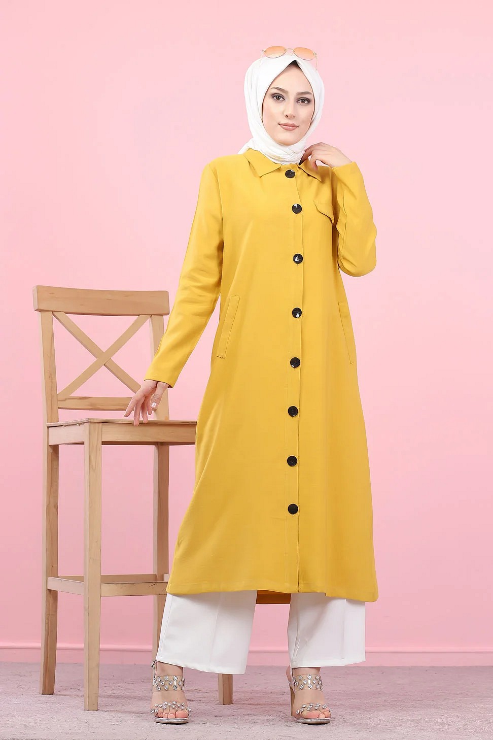 Veste longue pour femme - style chemise (Mode Musulmane) - Couleur jaune moutarde Vetement & Accessoire