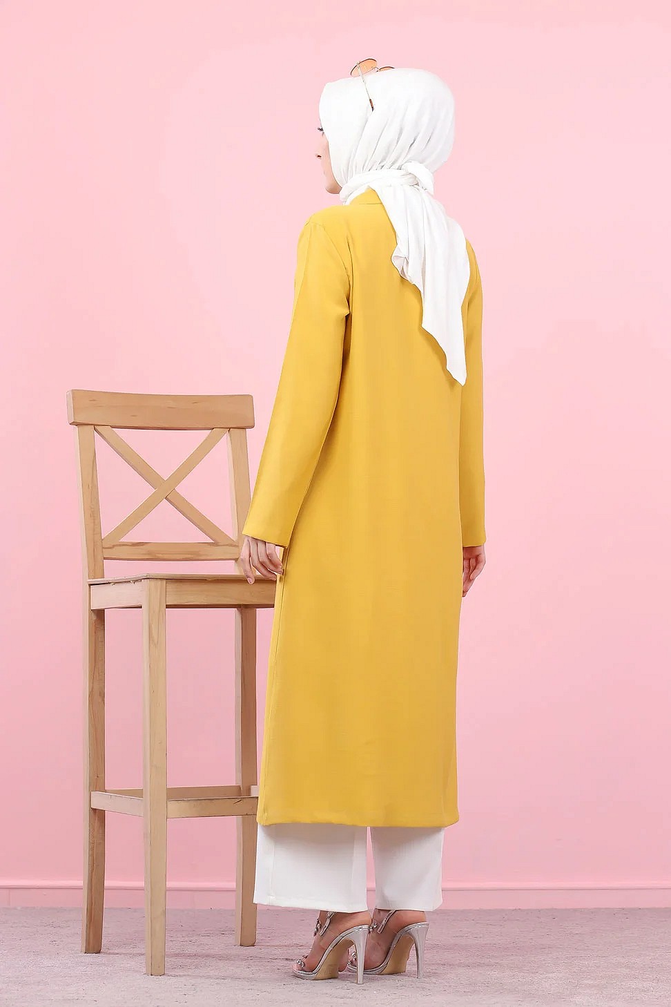 Veste longue pour femme - style chemise (Mode Musulmane) - Couleur jaune moutarde