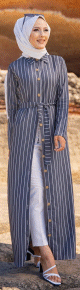 Robe chemise très longue à rayures (Vêtement décontracté pour femme musulmane) - Couleur gris et blanc - REF. 33917 (25.00 €)