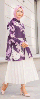 Tunique Chemise imprimée motifs fleurs (Vetement femme voilée) - Couleur Lilas - REF. 34699 (16.90 €)