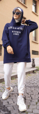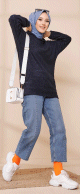 Sweat ample avec capuche imprimé pour femme - Couleur bleu marine - REF. 35180 (18.00 €)